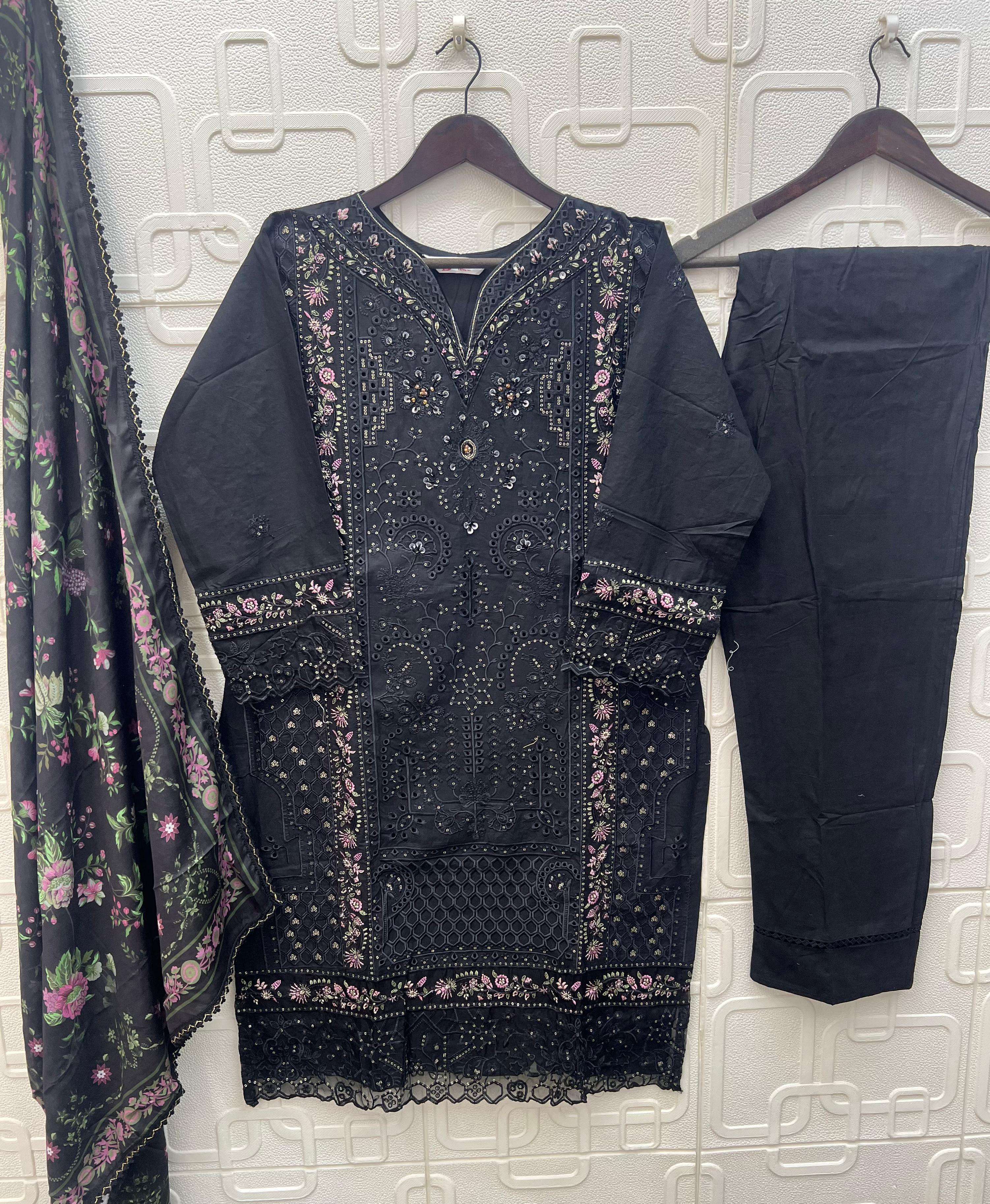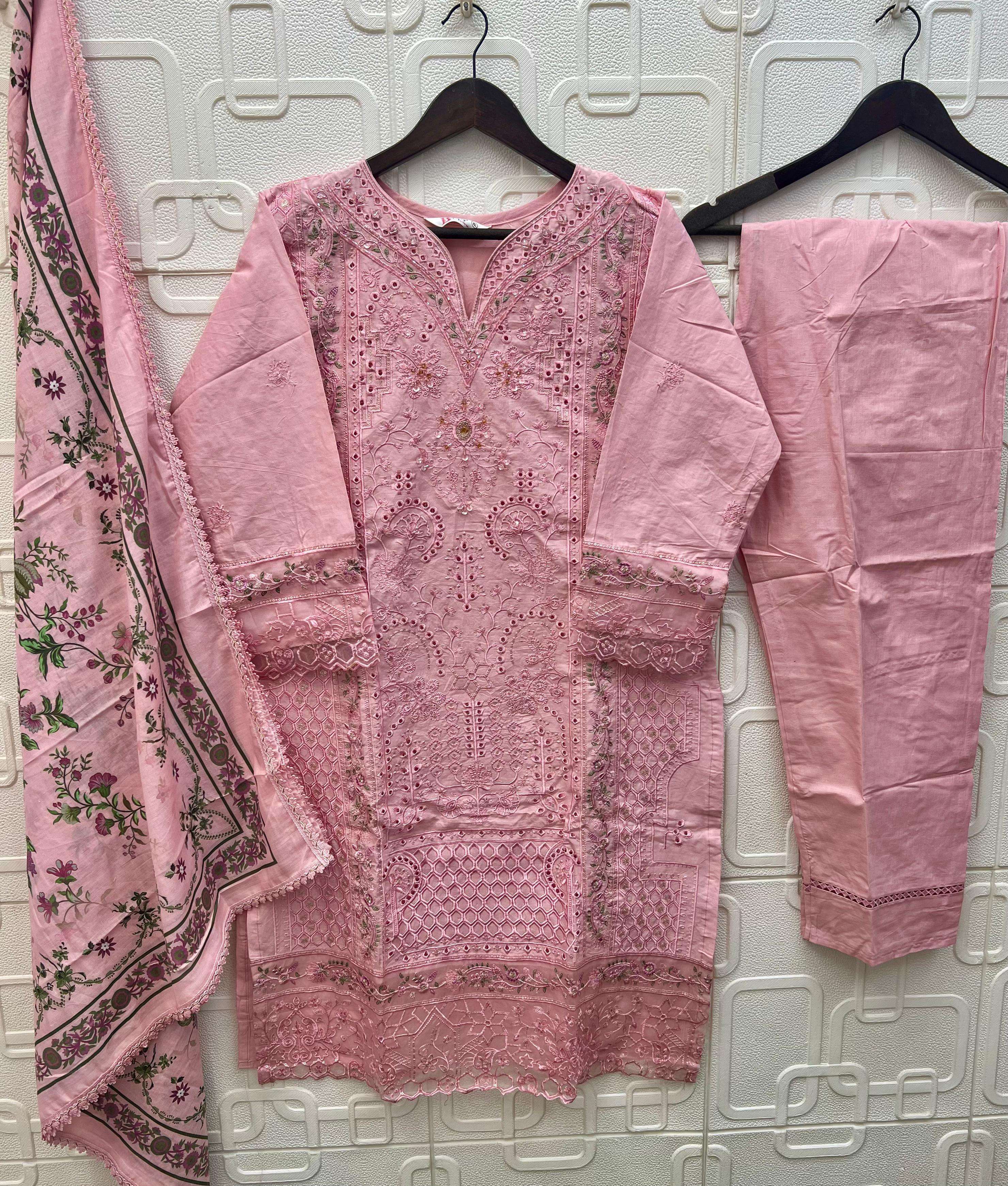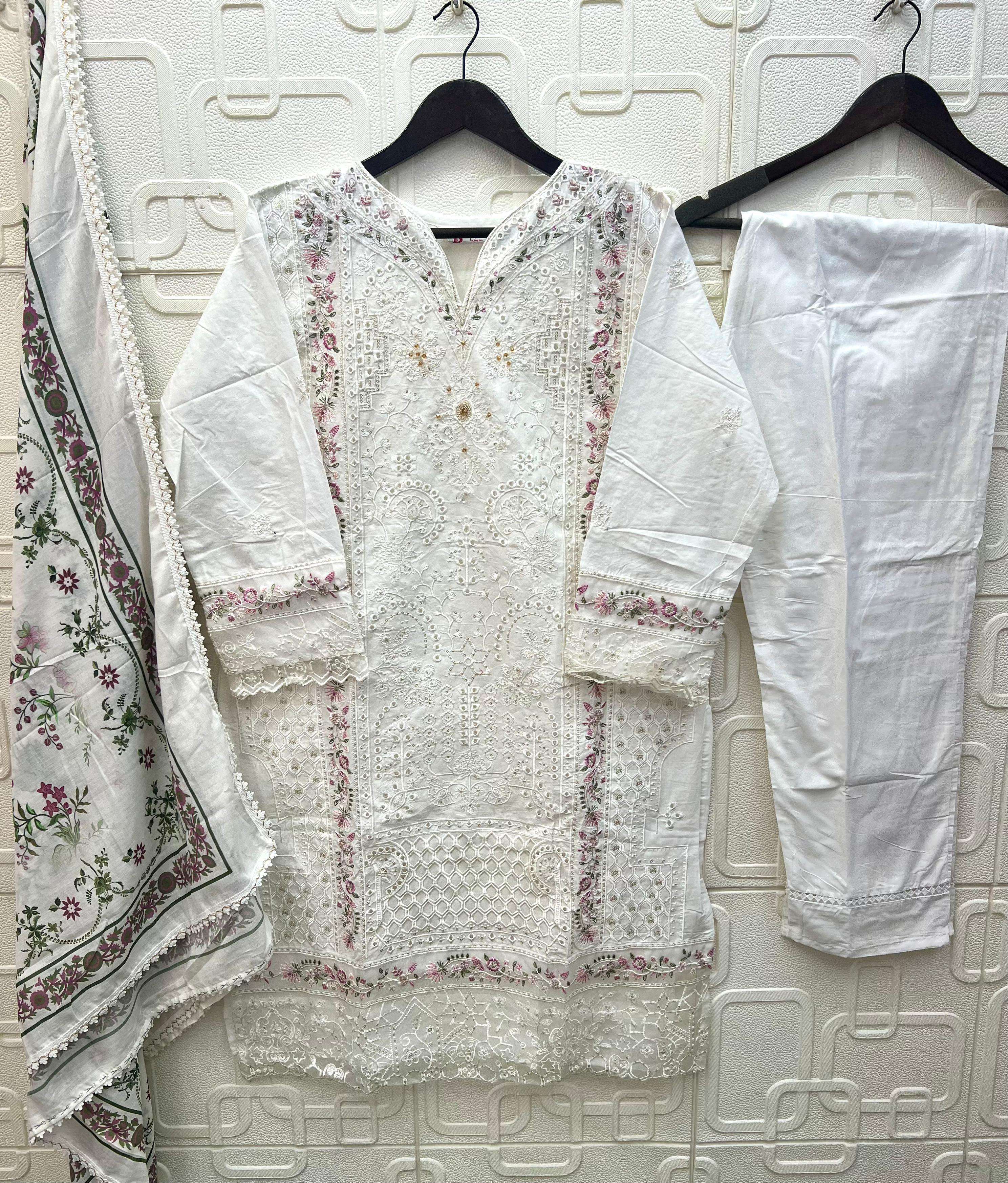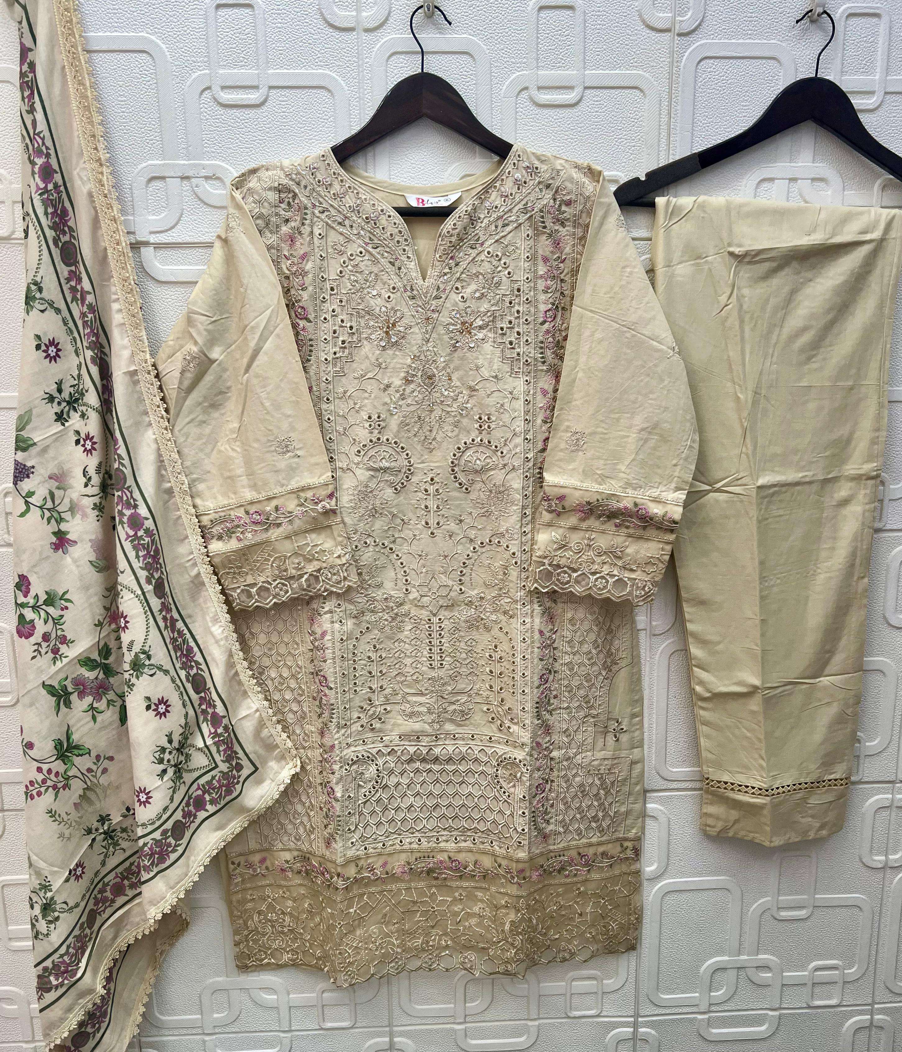 TOP - *CAMBRIC LAWN COTTON* HEAVY EMBROIDERED WITH *HANDWORK* BOTTOM - *CAMBRIC LAWN COTTON* DUPATTA - *COTTON DIGITAL PRINTED* WITH GPO LACE