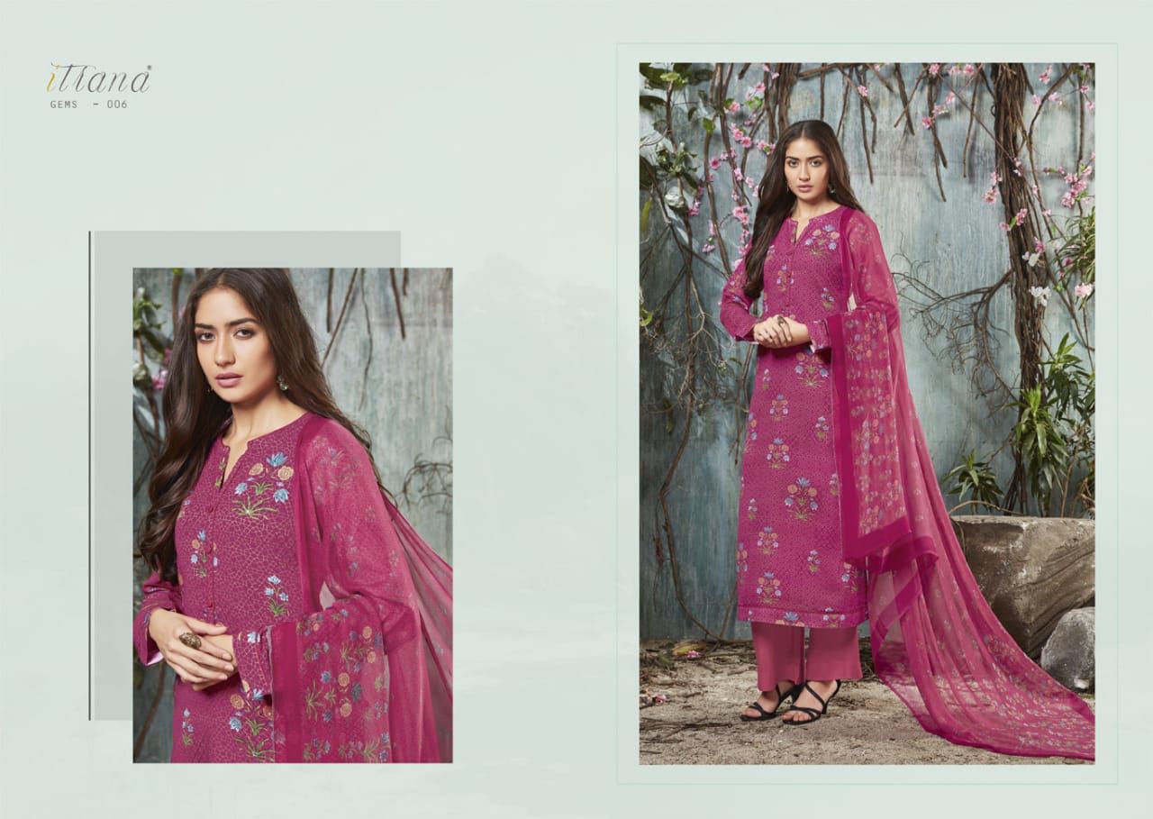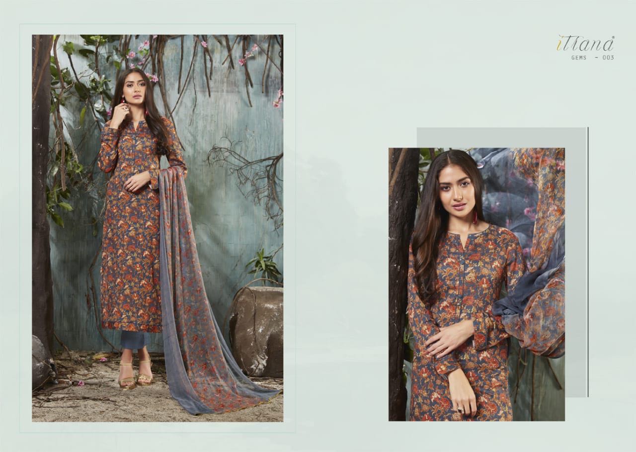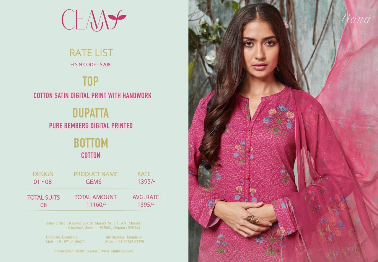 *ITRANA* - a SAHIBA BRAND presents its latest upcoming catalogue *GEM* Cotton satin digital print with handwork with pure bemberg digital print dupatta and cotton bottom *1395/-* Only set to set Delivery 2 Days 5%GST APPLICABLE |