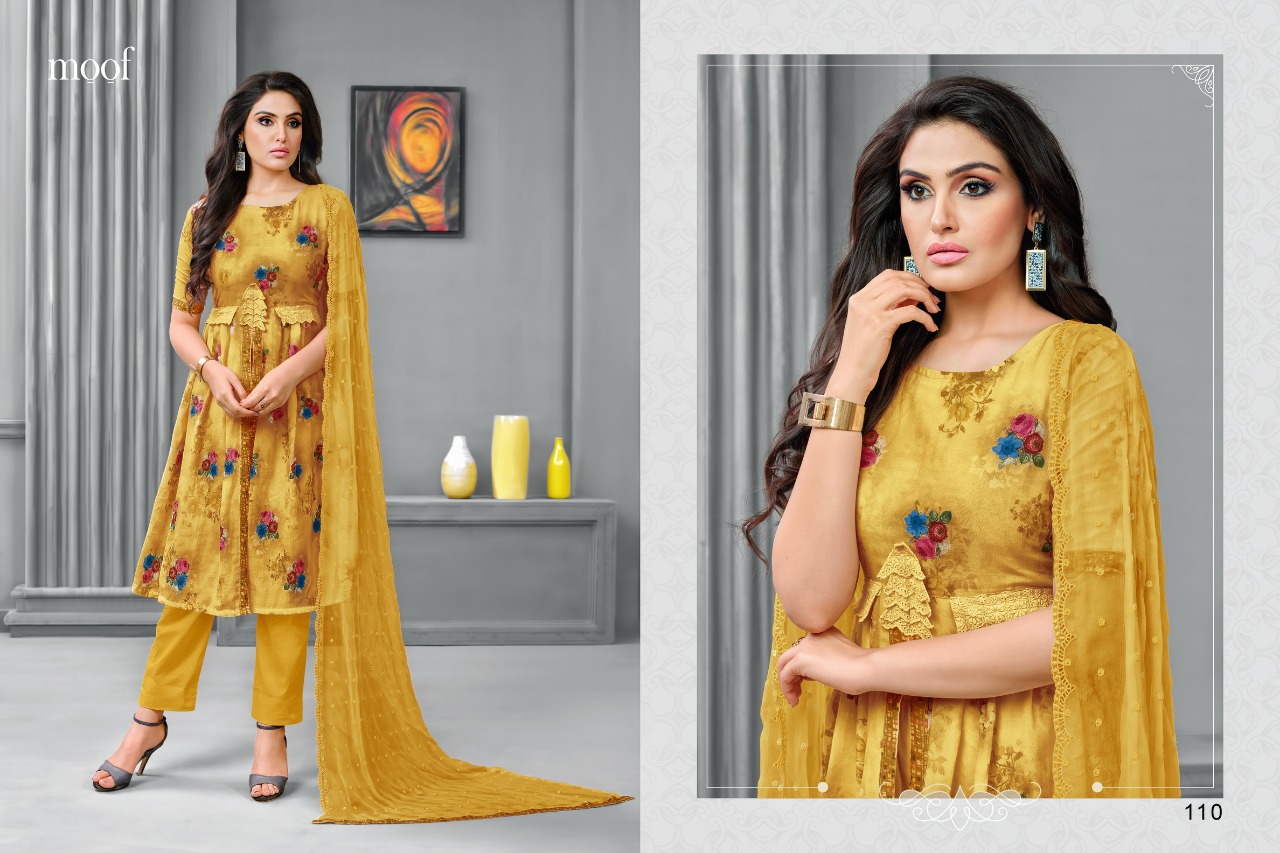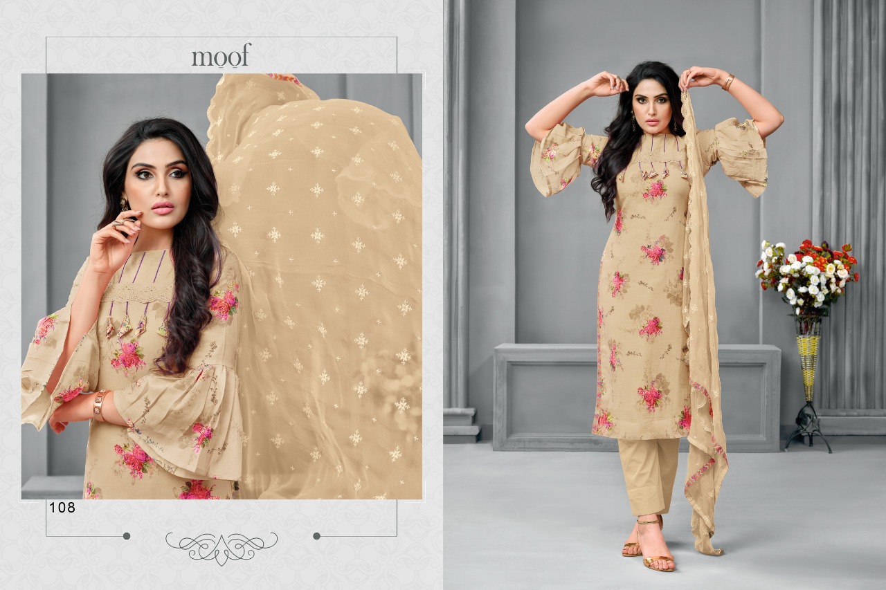 Moof fashion ... (IZAKAT) Present new Catlog .... Jashn duptta work .... Fabric details .... Top ... Cottan satin print fabrcies Bottom .. Havy semi loan Duptta .. Narzling with embroidery Suits-7 Price .. 630/- Delvry... 6-7 days Set To Set. GST 5 Percent Extra Regards Moof surat |