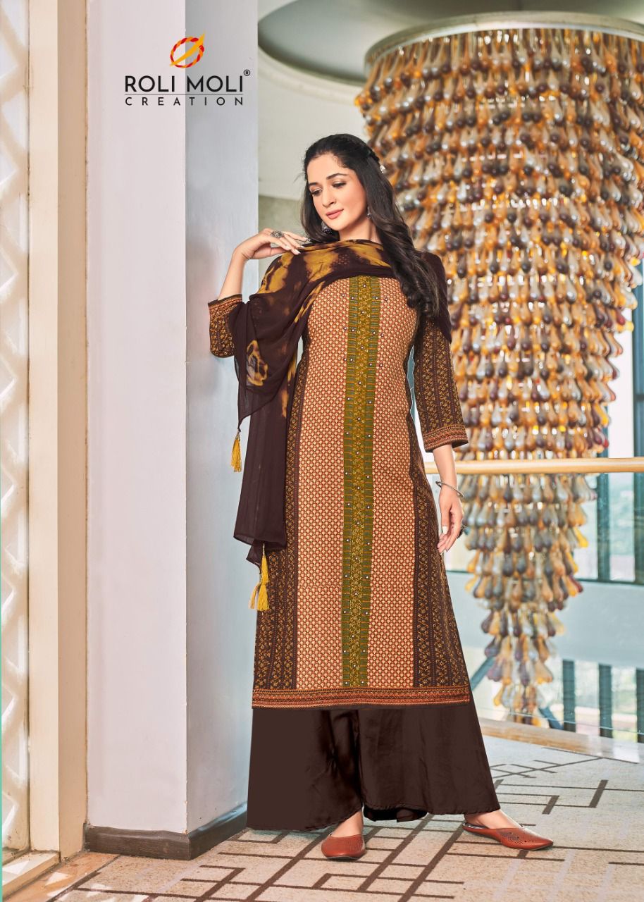 Buy Online Izhar By Roli Moli Creation Wholesaler Supplier From Surat 8 Pcs of Full Catalogue at Wholesale Price. Looking for Izhar By Roli Moli Creation Wholesaler Supplier From Surat Full Catalouge at Best Price? Buy Now Izhar By Roli Moli Creation Wholesaler Supplier From Surat at Wholesale Rate of Rs 4360 with Total 8 Pcs from authroized dealer and supplier of Brand. Cost of Each piece is just only Rs 545 which is very low and affordable price to resale the product in your retail store ,This is Surat based Wholesale Supplier & Dealer of Brand. Click on Brand name to Know more about Brand's products.Call or Whatsapp on 9898838984 for booking or enquiry