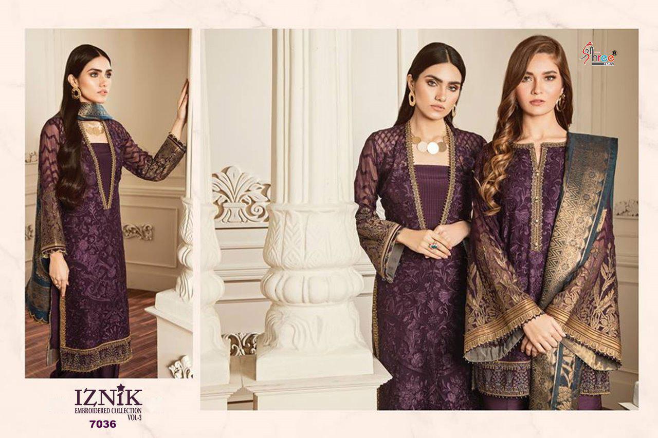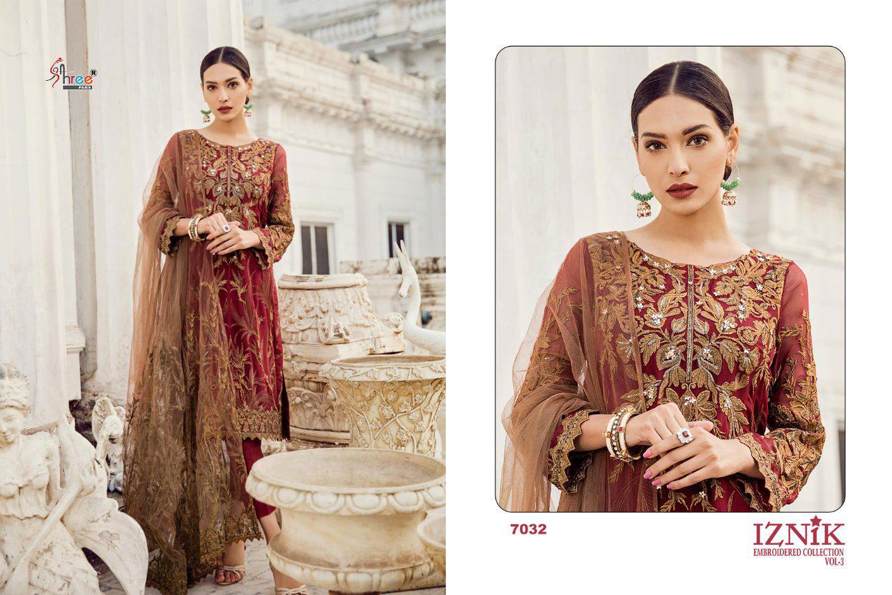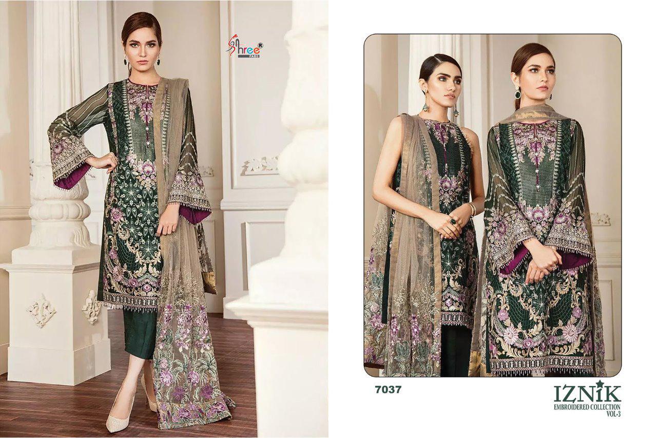 Buy Online Iznik Embroidered Collection Vol 3 By Shree Fabs 7031 Series Fancy Georgette Pakistani Suit Collection Wholesaler Surat 8 Pcs of Full Catalogue at Wholesale Price. Looking for Iznik Embroidered Collection Vol 3 By Shree Fabs 7031 Series Fancy Georgette Pakistani Suit Collection Wholesaler Surat Full Catalouge at Best Price? Buy Now Iznik Embroidered Collection Vol 3 By Shree Fabs 7031 Series Fancy Georgette Pakistani Suit Collection Wholesaler Surat at Wholesale Rate of Rs 9592 with Total 8 Pcs from authroized dealer and supplier of SHREE FABS Brand. Cost of Each piece is just only Rs 1199 which is very low and affordable price to resale the product in your retail store ,This is Surat based Wholesale Supplier & Dealer of SHREE FABS Brand. Click on Brand name to Know more about SHREE FABS Brand's products.Call or Whatsapp on 9898838984 for booking or enquiry