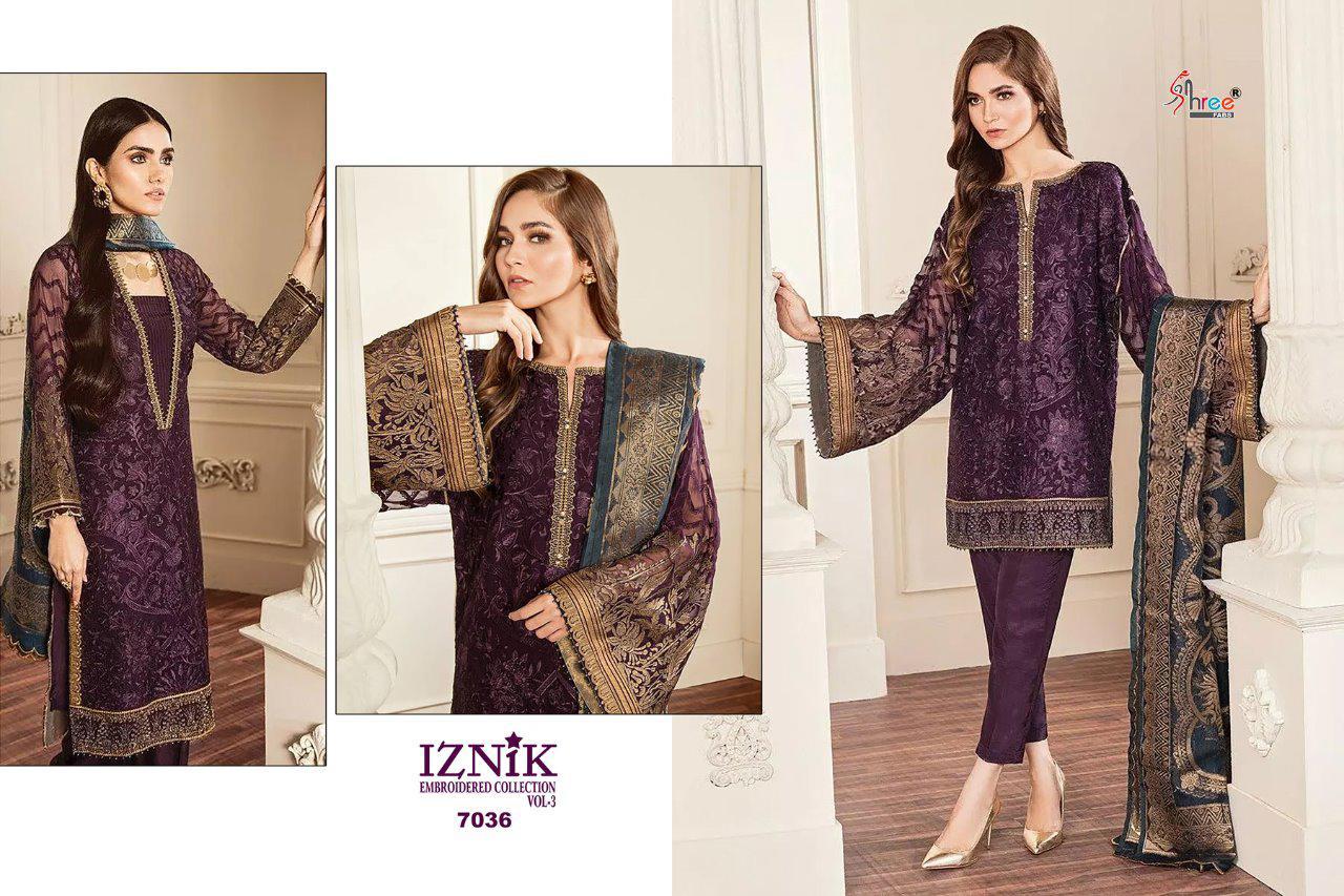 Iznik Embroidered Collection Vol 3 By Shree Fabs 7031 Series Fancy Georgette Pakistani Suit Collection Wholesaler Surat
