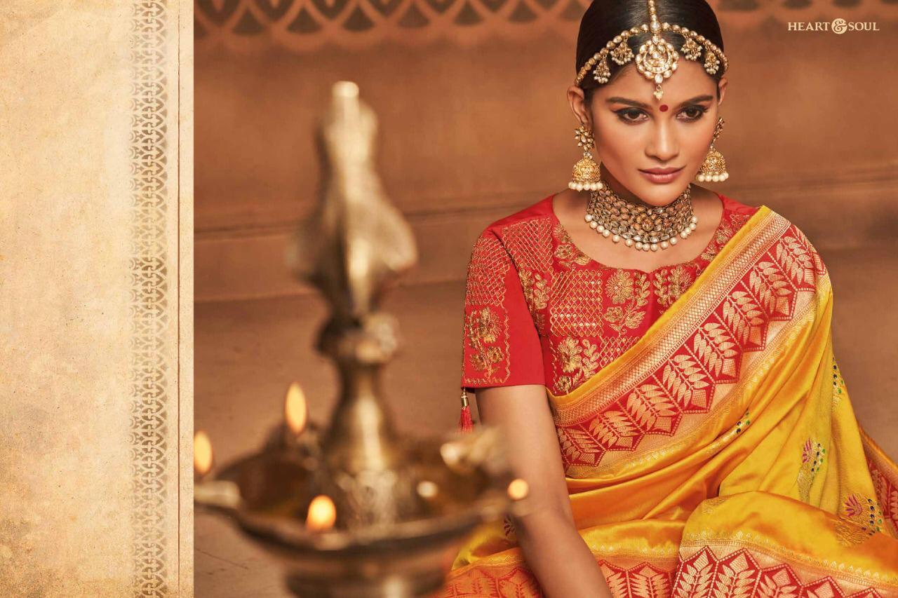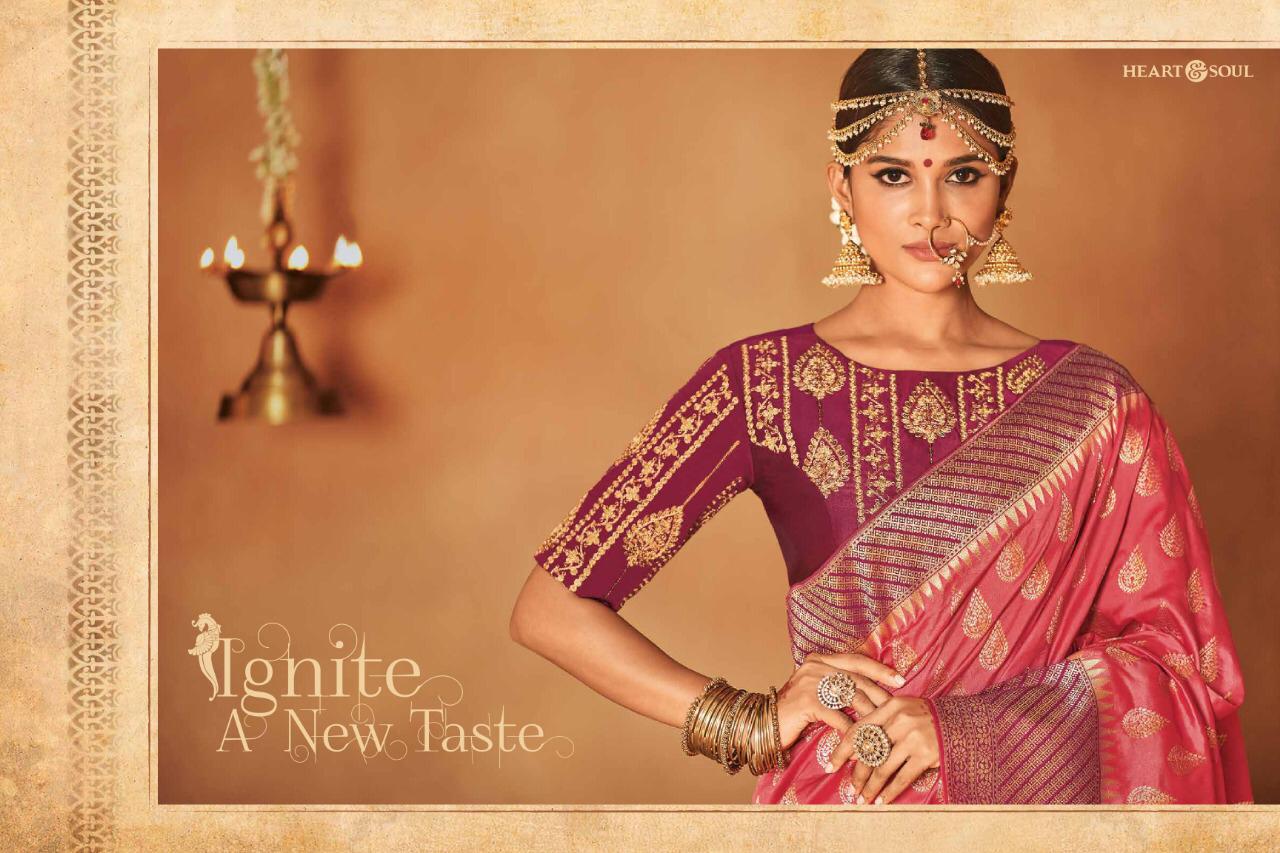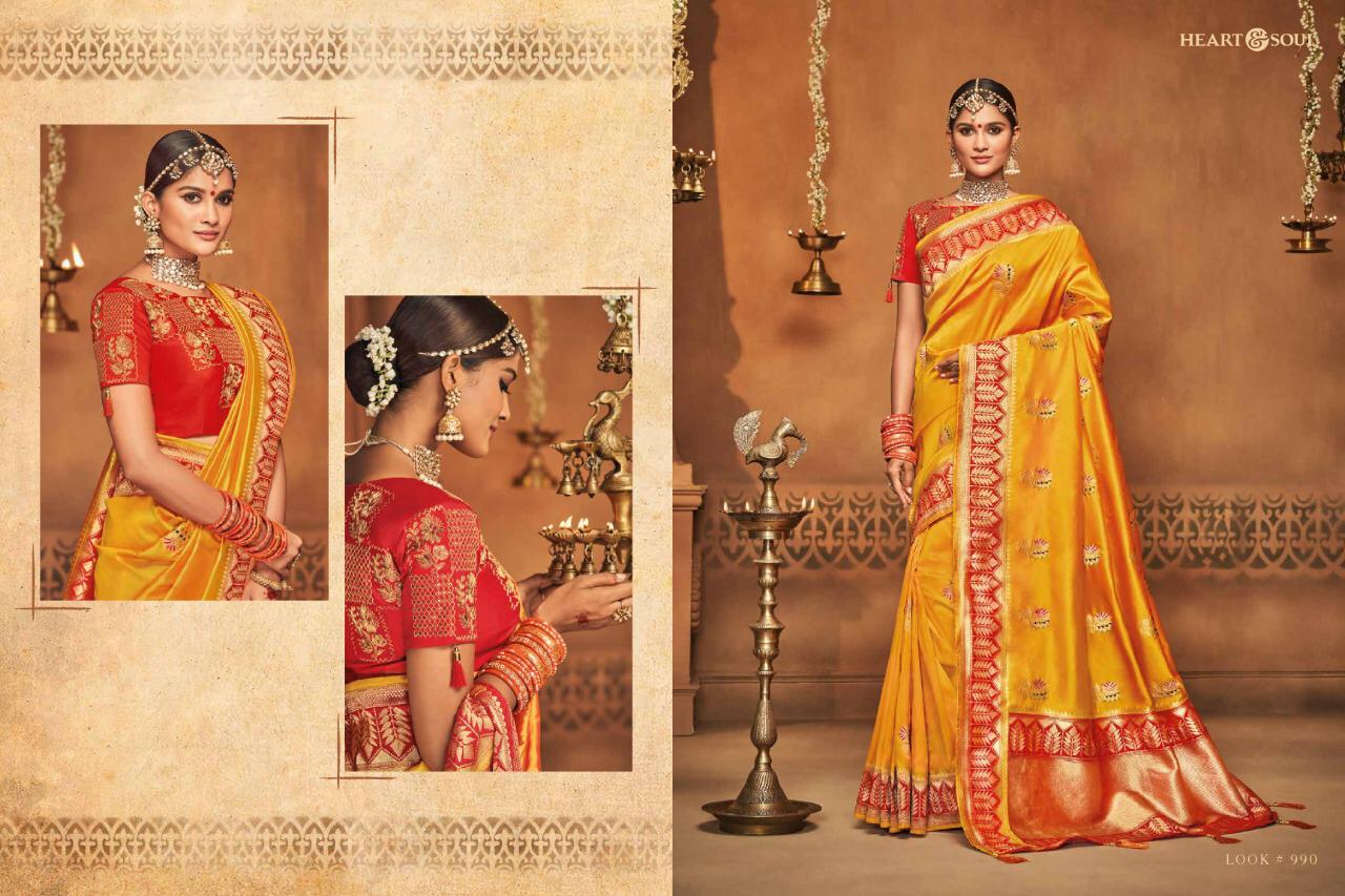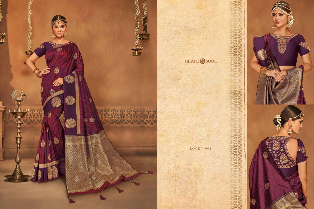 Brand - Heart & Soul Type - saree. Series -982 to 991. * Regular blouse price list separate * ** REGULAR BLOUSE WITH STICH BLOUSE PRICE LIST SEPARATE ** Please note . GST 5 Percent Extra. Delivery 2-3 days . ???. Please note Rate list are separate for Running blouse & * Running with stich blouse * Fabric- P silk JAQURAD. * set & Loose & Singel * |