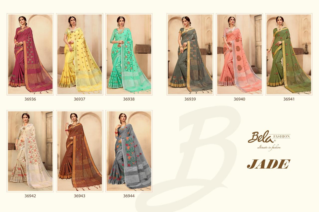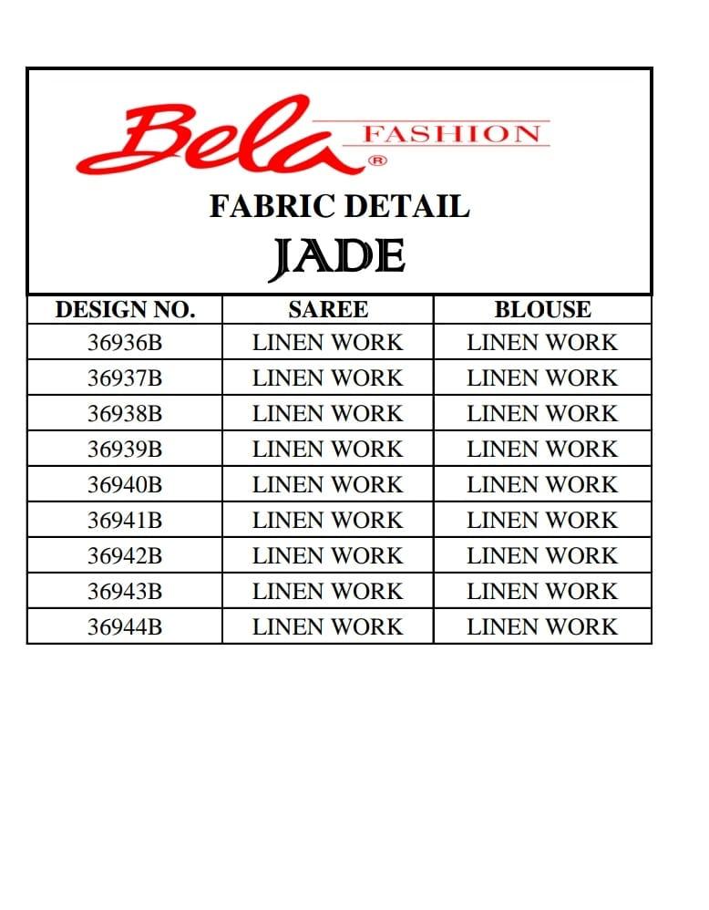 Brand - Bela . Type - Saree. Catlog Name - JADE . Series - 36936 B to 36944 B. Set & loose & Singel . Rate - 990 per Pcs. Single extra 100 GST 5 Percent Extra. Delivery 3-4 days . |