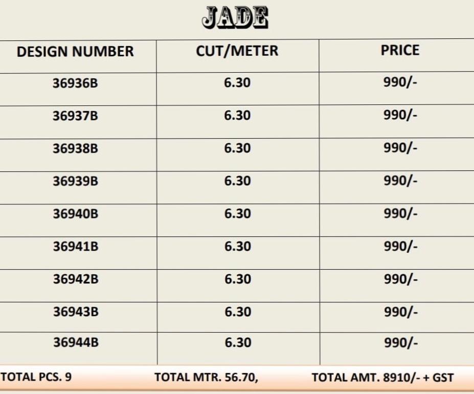 Buy Online Jade By Bela Series 36936b Fancy Sarees Set And Single Wholesale Supplier And Dealer Gujarat 9 Pcs of Full Catalogue at Wholesale Price. Looking for Jade By Bela Series 36936b Fancy Sarees Set And Single Wholesale Supplier And Dealer Gujarat Full Catalouge at Best Price? Buy Now Jade By Bela Series 36936b Fancy Sarees Set And Single Wholesale Supplier And Dealer Gujarat at Wholesale Rate of Rs 8910 with Total 9 Pcs from authroized dealer and supplier of BELA Brand. Cost of Each piece is just only Rs 990 which is very low and affordable price to resale the product in your retail store ,This is Surat based Wholesale Supplier & Dealer of BELA Brand. Click on Brand name to Know more about BELA Brand's products.Call or Whatsapp on 9898838984 for booking or enquiry