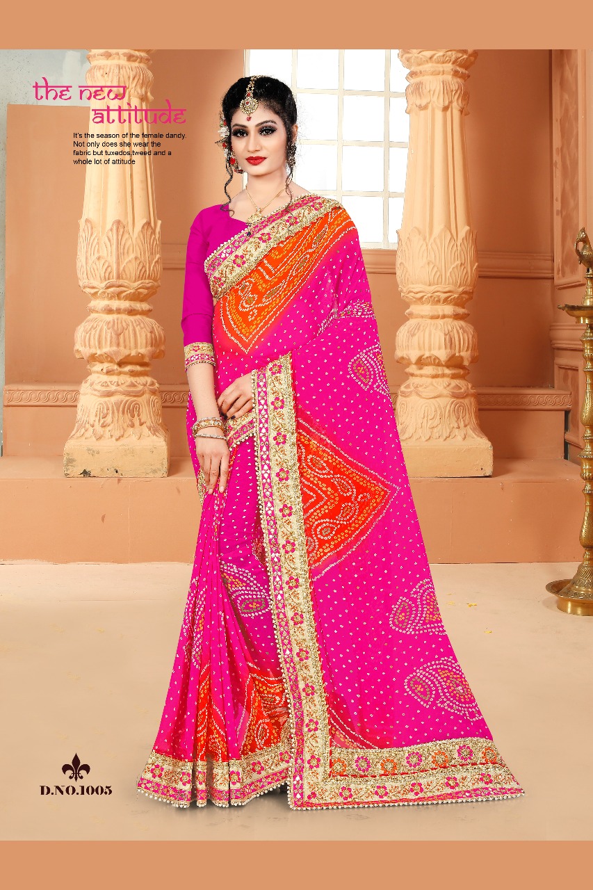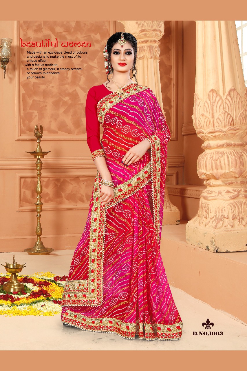 Jalnidhi Sarees Palki 1001 Series Gorget Bandhni Print Saree Catlog Wholesaler And Supplier Surat
