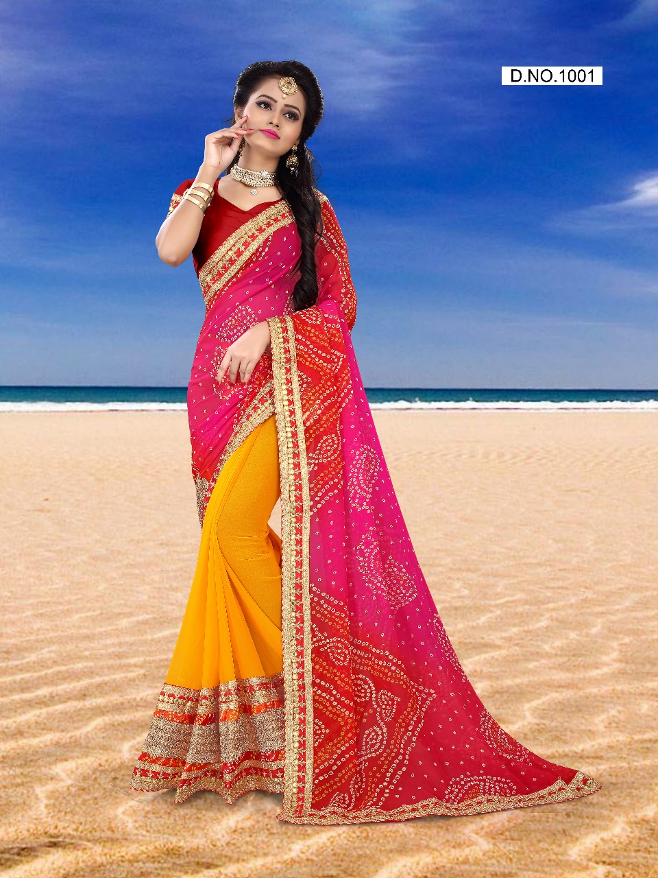 Jalnidhi Sarees Panghat Bandhej Georgett Sarees Surat Gujrat