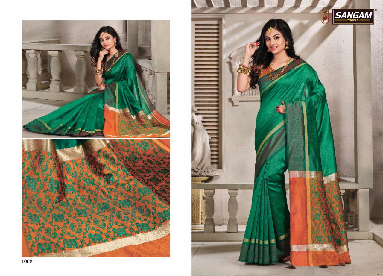 Buy Online Jalpari By Sangam 1001 Series Fancy Weaving Silk Saree Catlog Wholesaler Surat 8 Pcs of Full Catalogue at Wholesale Price. Looking for Jalpari By Sangam 1001 Series Fancy Weaving Silk Saree Catlog Wholesaler Surat Full Catalouge at Best Price? Buy Now Jalpari By Sangam 1001 Series Fancy Weaving Silk Saree Catlog Wholesaler Surat at Wholesale Rate of Rs 7000 with Total 8 Pcs from authroized dealer and supplier of SANGAM Brand. Cost of Each piece is just only Rs 875 which is very low and affordable price to resale the product in your retail store ,This is Surat based Wholesale Supplier & Dealer of SANGAM Brand. Click on Brand name to Know more about SANGAM Brand's products.Call or Whatsapp on 9898838984 for booking or enquiry