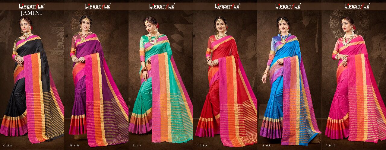 Buy Online Jamini By Lifestyle Weaving Silk Sarees Wholesale Supplier And Dealer Gujarat 6 Pcs of Full Catalogue at Wholesale Price. Looking for Jamini By Lifestyle Weaving Silk Sarees Wholesale Supplier And Dealer Gujarat Full Catalouge at Best Price? Buy Now Jamini By Lifestyle Weaving Silk Sarees Wholesale Supplier And Dealer Gujarat at Wholesale Rate of Rs 3216 with Total 6 Pcs from authroized dealer and supplier of LIFESTYLE Brand. Cost of Each piece is just only Rs 536 which is very low and affordable price to resale the product in your retail store ,This is Surat based Wholesale Supplier & Dealer of LIFESTYLE Brand. Click on Brand name to Know more about LIFESTYLE Brand's products.Call or Whatsapp on 9898838984 for booking or enquiry