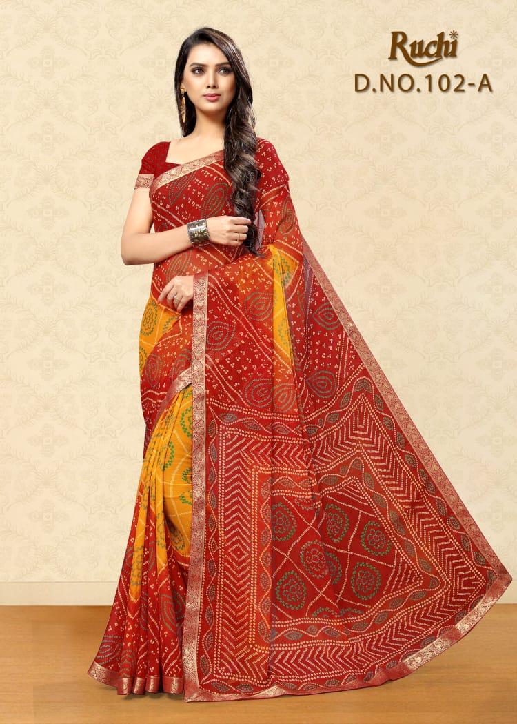 Jamkudi By Ruchi Sarees Chiffon Sarees Set Nd Single Wholesale Supplier Gujarat