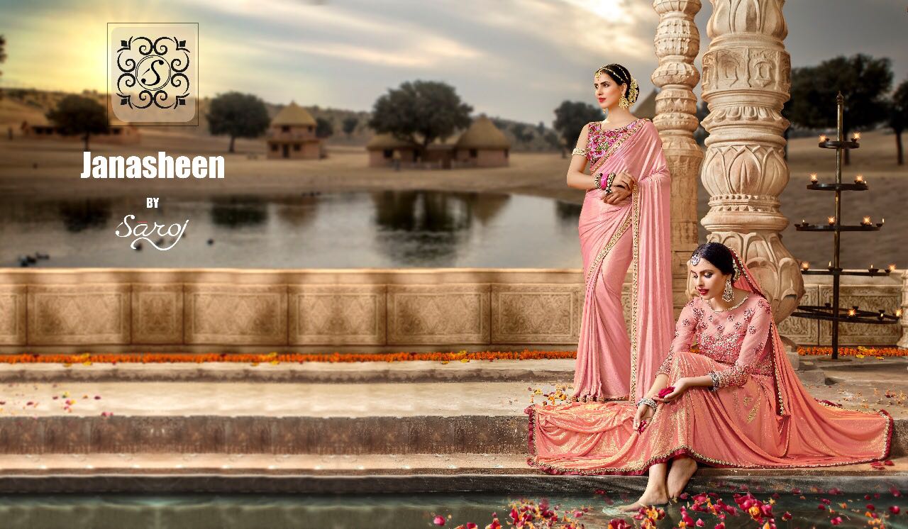 Buy Online Janasheen By Saroj 9001 To 9006 Series Fancyparty Wear Saree 6 Pcs of Full Catalogue at Wholesale Price. Looking for Janasheen By Saroj 9001 To 9006 Series Fancyparty Wear Saree Full Catalouge at Best Price? Buy Now Janasheen By Saroj 9001 To 9006 Series Fancyparty Wear Saree at Wholesale Rate of Rs 11850 with Total 6 Pcs from authroized dealer and supplier of SAROJ SAREE Brand. Cost of Each piece is just only Rs 1975 which is very low and affordable price to resale the product in your retail store ,This is Surat based Wholesale Supplier & Dealer of SAROJ SAREE Brand. Click on Brand name to Know more about SAROJ SAREE Brand's products.Call or Whatsapp on 9898838984 for booking or enquiry