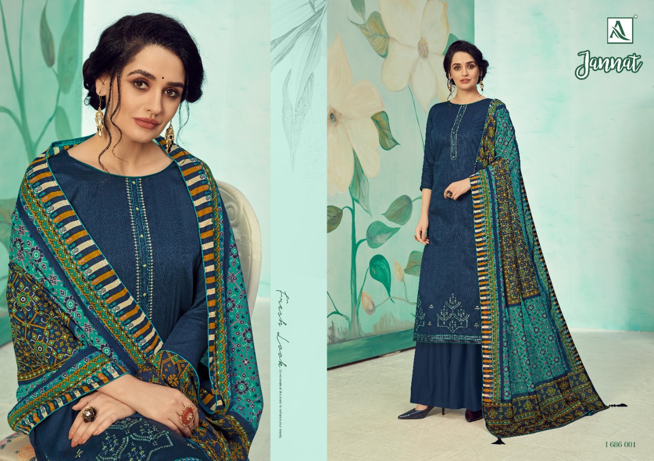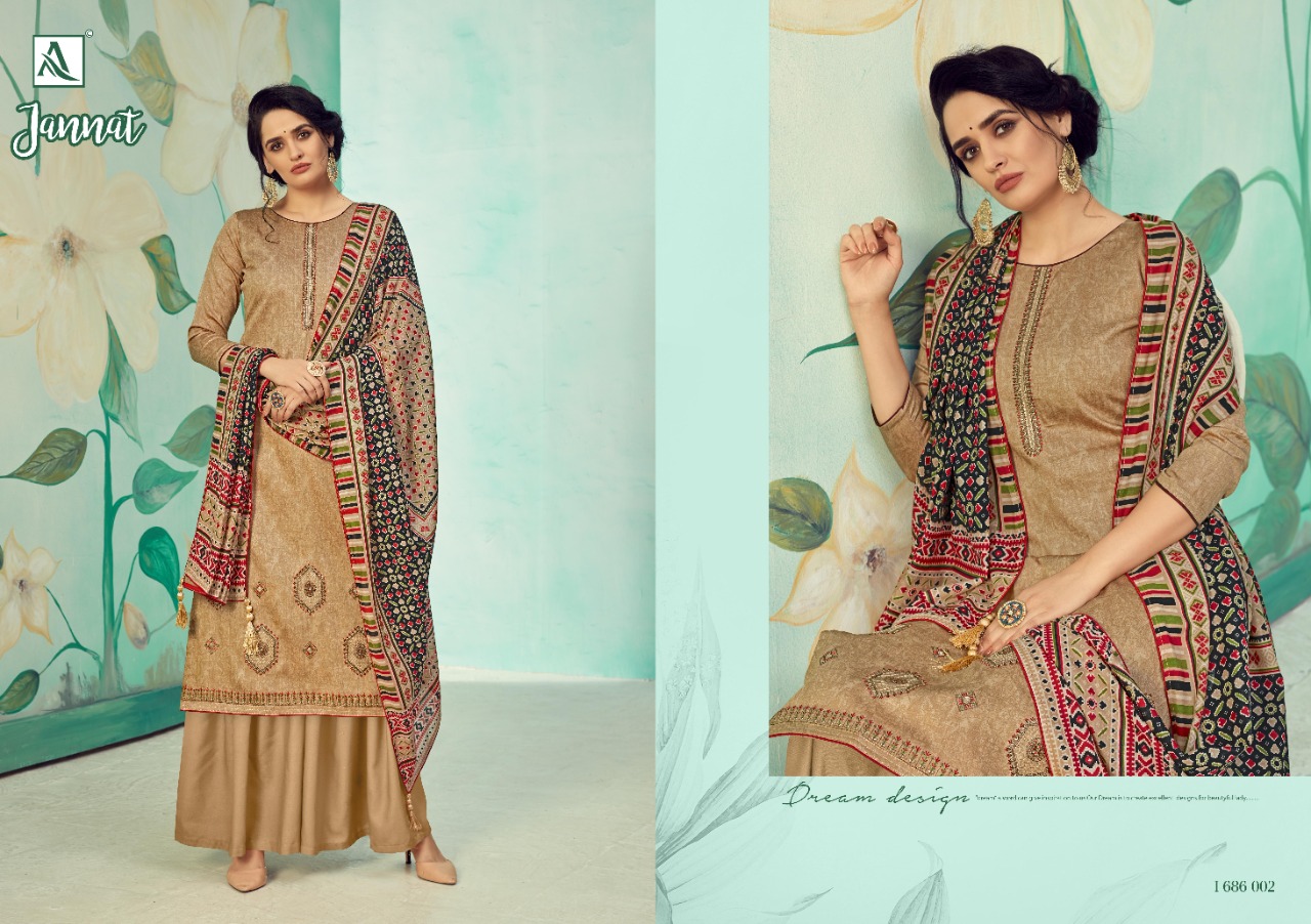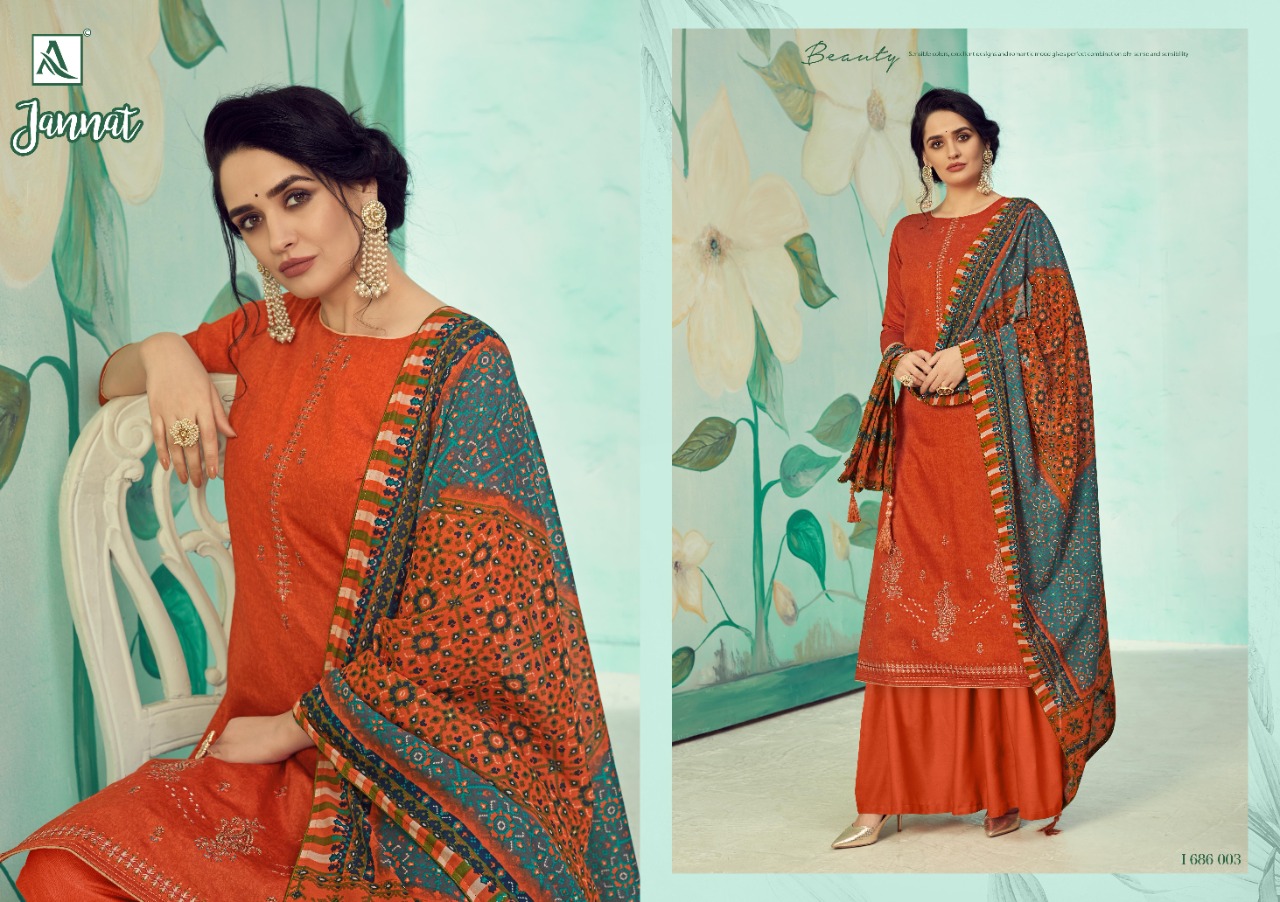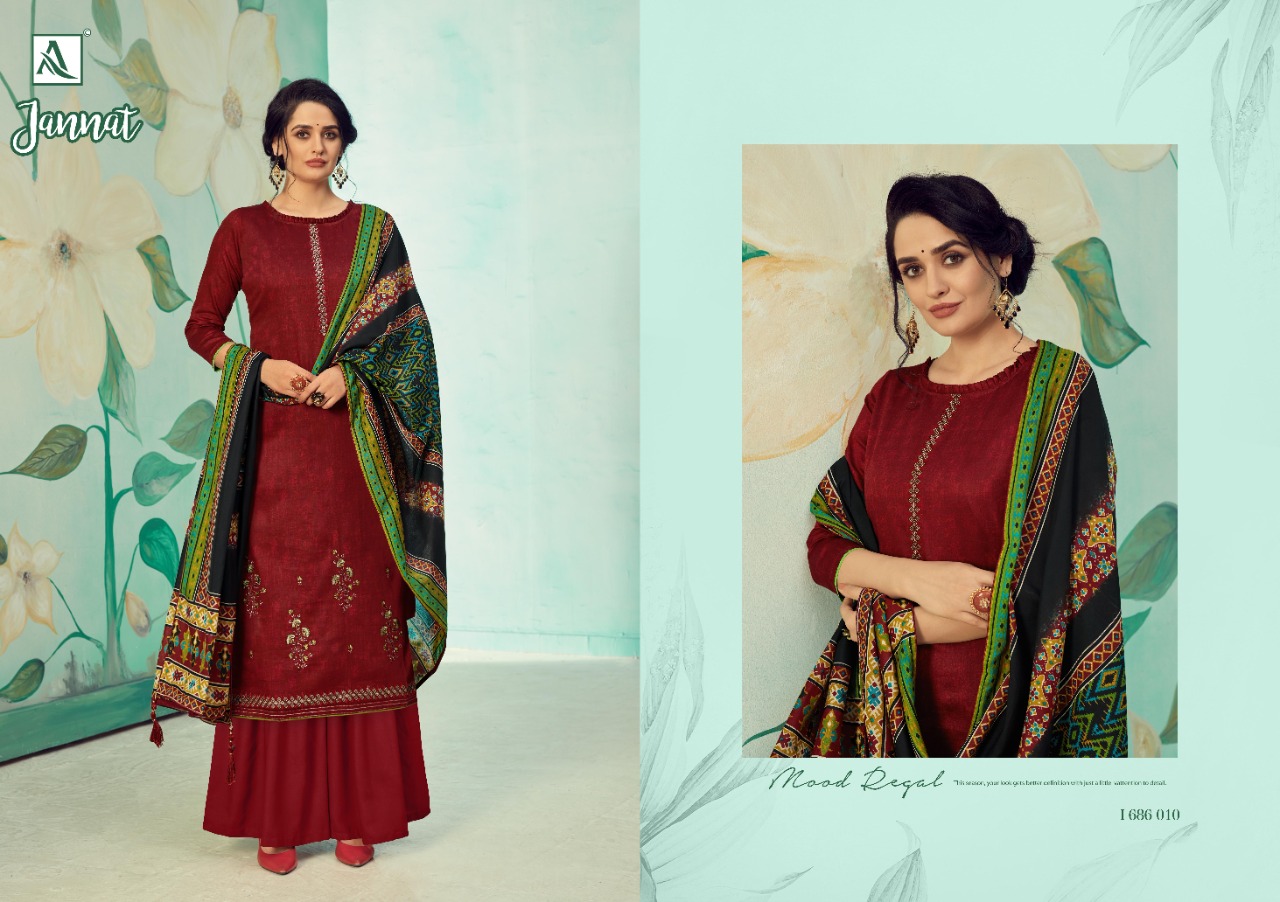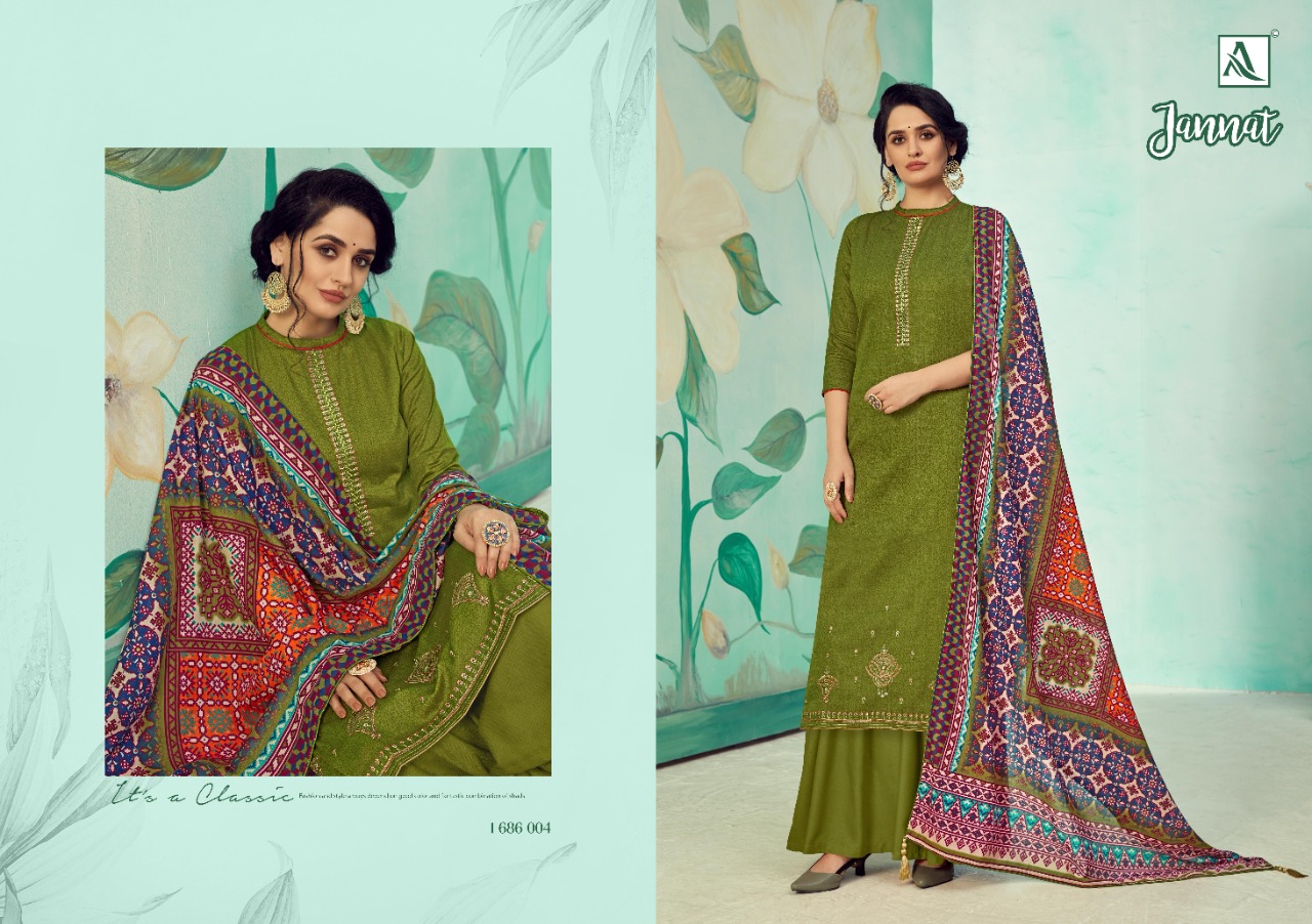 Buy Online Jannat By Alok Suit Single And Set Stockiest And Supplier From Surat 10 Pcs of Full Catalogue at Wholesale Price. Looking for Jannat By Alok Suit Single And Set Stockiest And Supplier From Surat Full Catalouge at Best Price? Buy Now Jannat By Alok Suit Single And Set Stockiest And Supplier From Surat at Wholesale Rate of Rs 6250 with Total 10 Pcs from authroized dealer and supplier of Brand. Cost of Each piece is just only Rs 625 which is very low and affordable price to resale the product in your retail store ,This is Surat based Wholesale Supplier & Dealer of Brand. Click on Brand name to Know more about Brand's products.Call or Whatsapp on 9898838984 for booking or enquiry