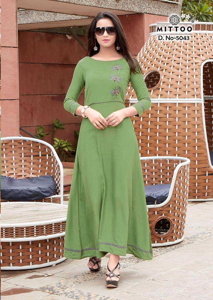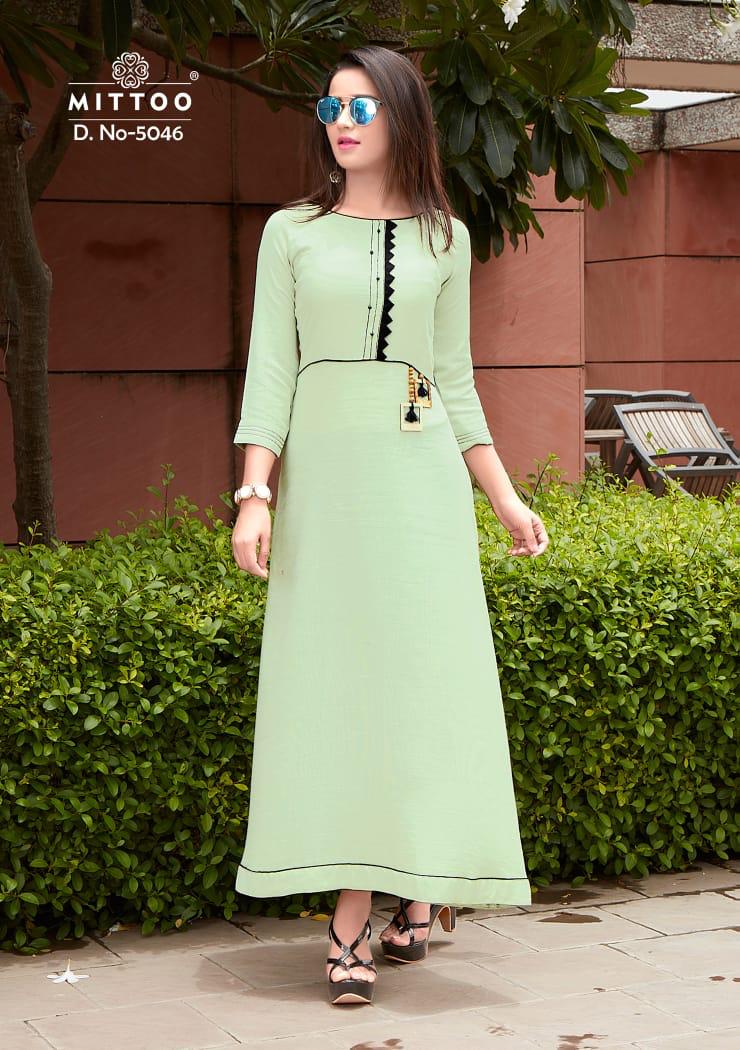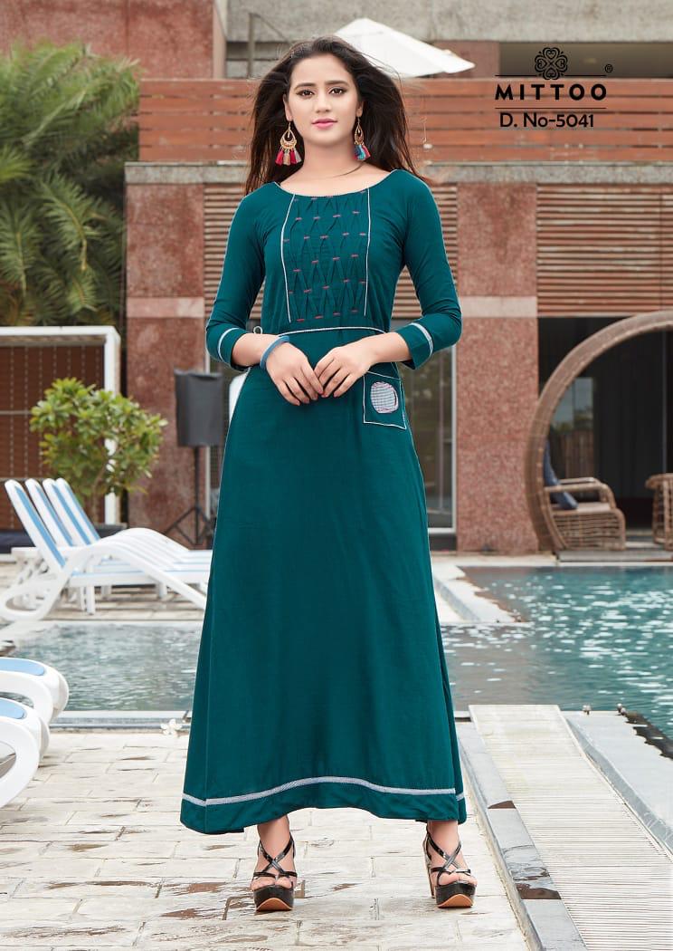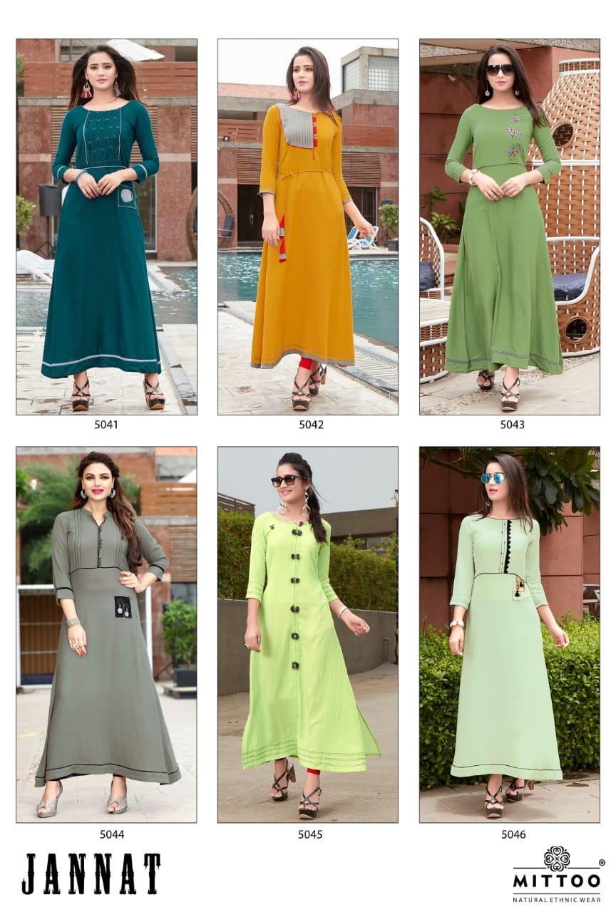 Buy Online Jannat By Mittoo 5041 Series Fancy Reyon Flex Kurti Catlog Wholesale Dealer Surat 6 Pcs of Full Catalogue at Wholesale Price. Looking for Jannat By Mittoo 5041 Series Fancy Reyon Flex Kurti Catlog Wholesale Dealer Surat Full Catalouge at Best Price? Buy Now Jannat By Mittoo 5041 Series Fancy Reyon Flex Kurti Catlog Wholesale Dealer Surat at Wholesale Rate of Rs 2760 with Total 6 Pcs from authroized dealer and supplier of MITTOO Brand. Cost of Each piece is just only Rs 460 which is very low and affordable price to resale the product in your retail store ,This is Surat based Wholesale Supplier & Dealer of MITTOO Brand. Click on Brand name to Know more about MITTOO Brand's products.Call or Whatsapp on 9898838984 for booking or enquiry
