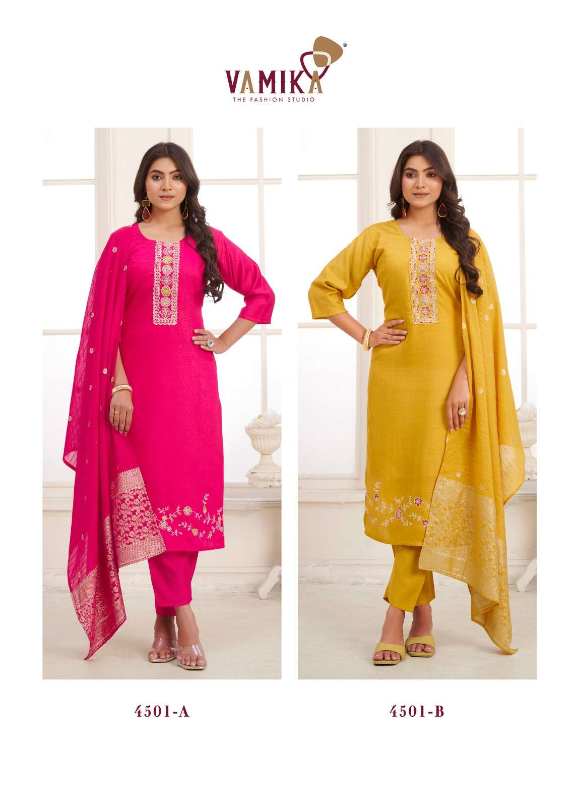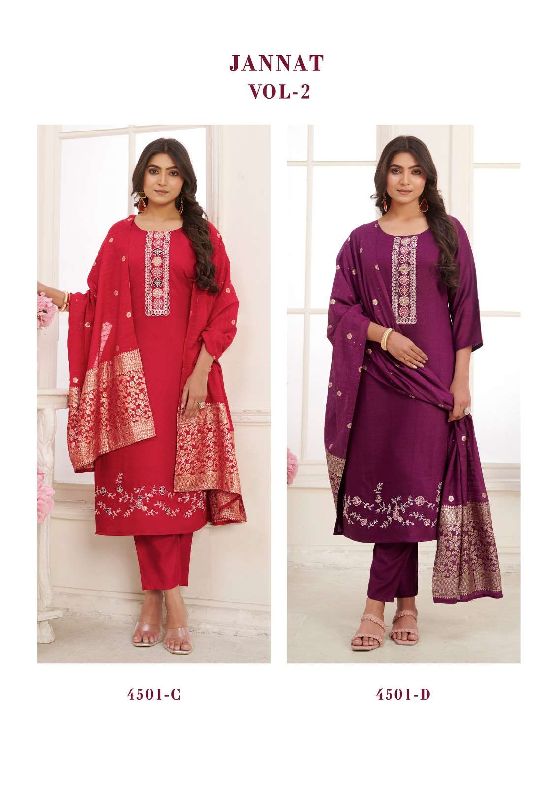 Presents *For This season Presenting Exclusive Super Hit Multi With Hand Work* Catalogue Name:- *Jannat Vol-02* *(4 Pcs )* *(D.NO.4501A To 4501D)*