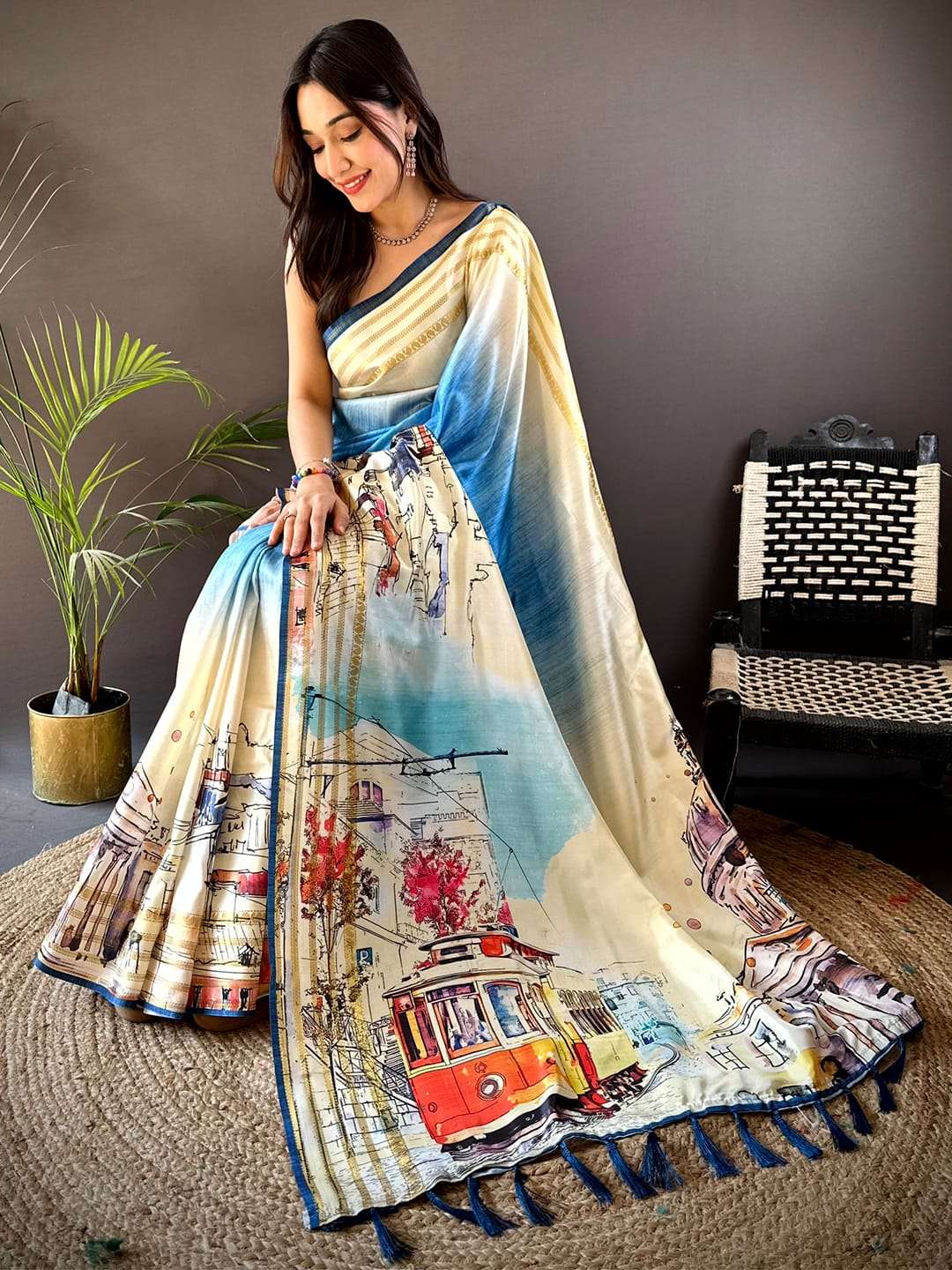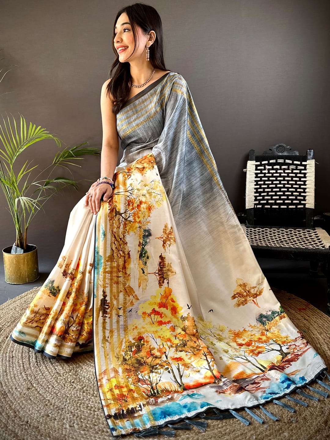 Step into elegance with this _Japanese Freehand Digital Print Saree_ and make a graceful statement wherever you go! 💃🏻👗 |