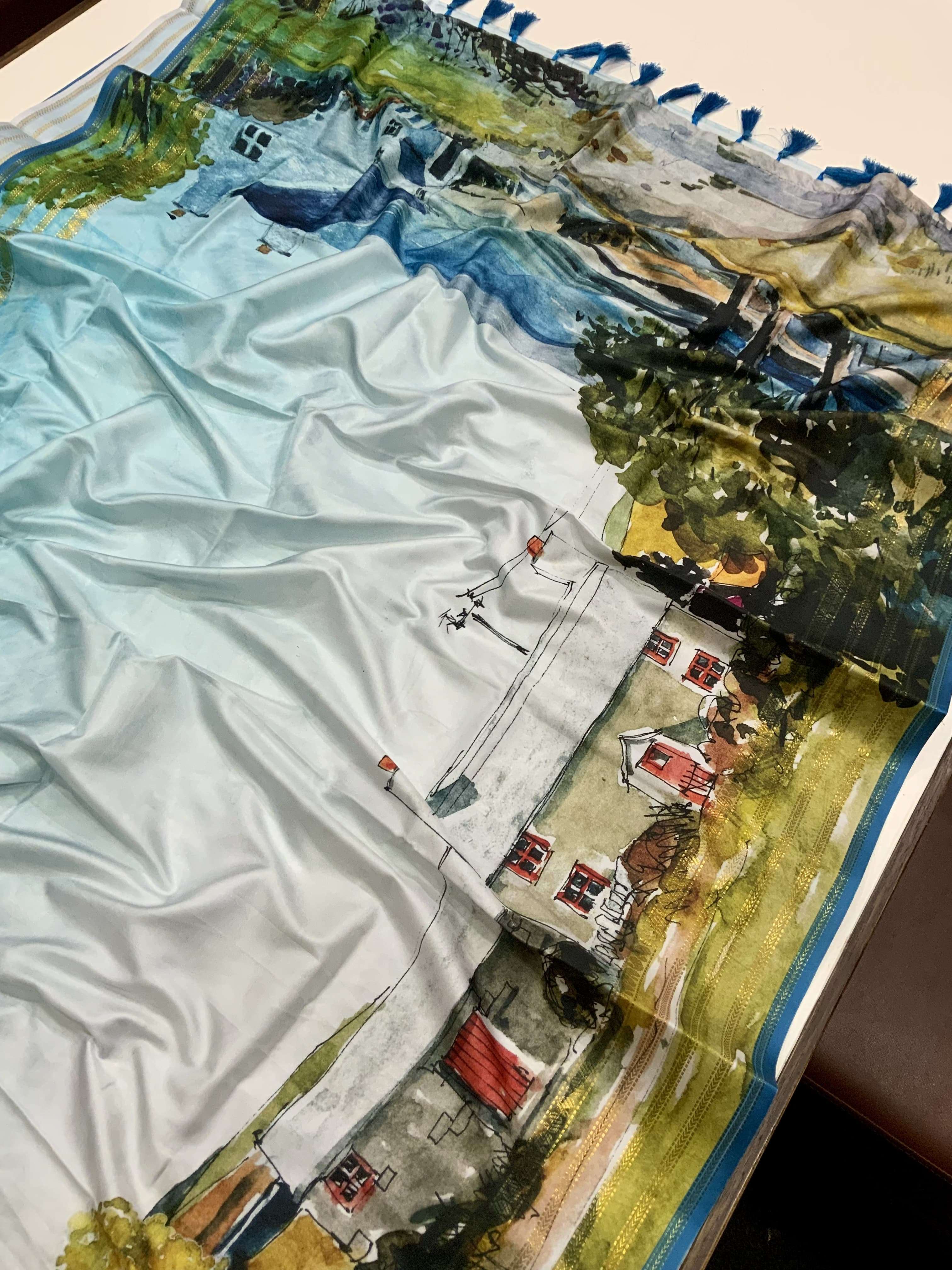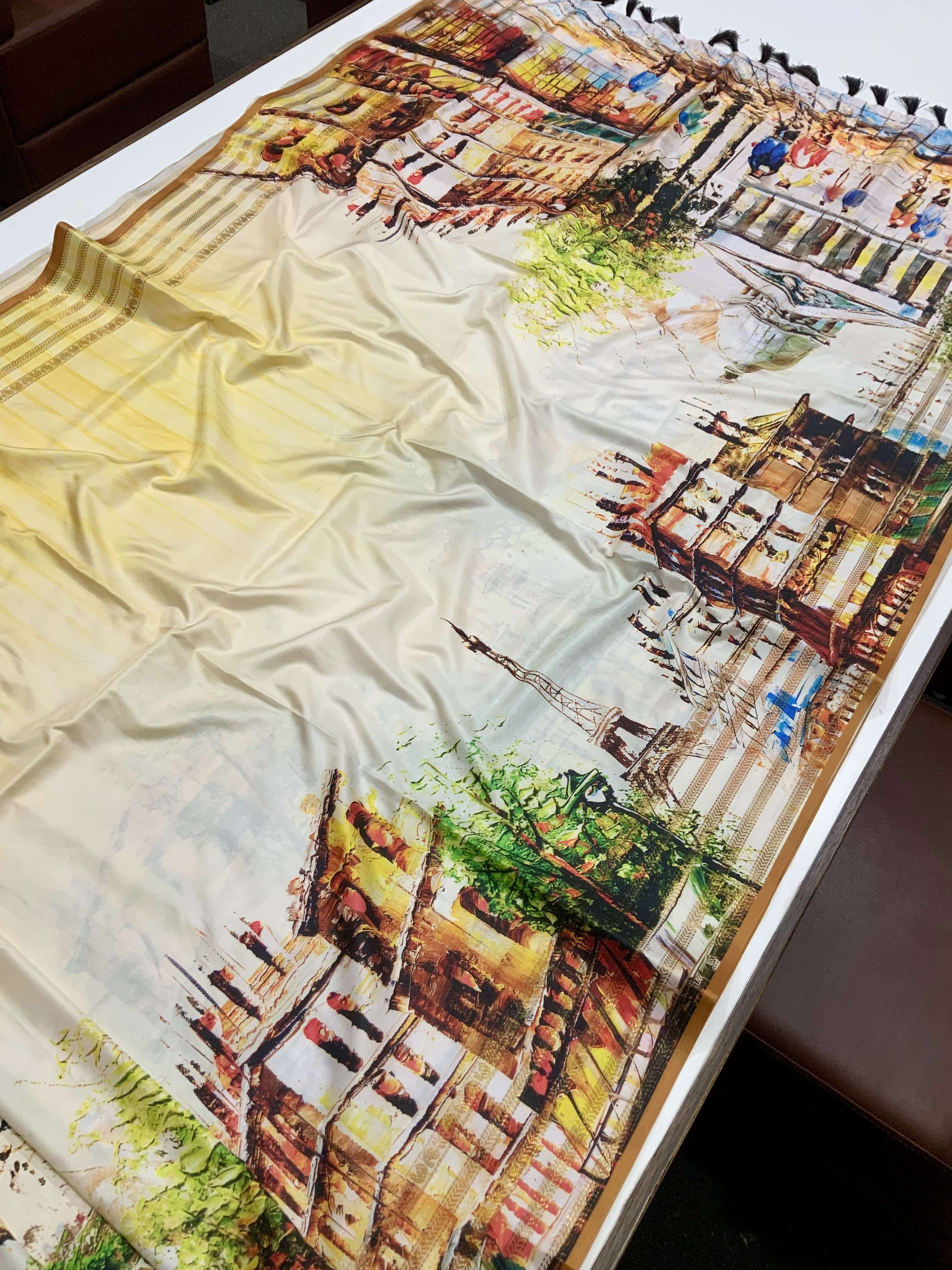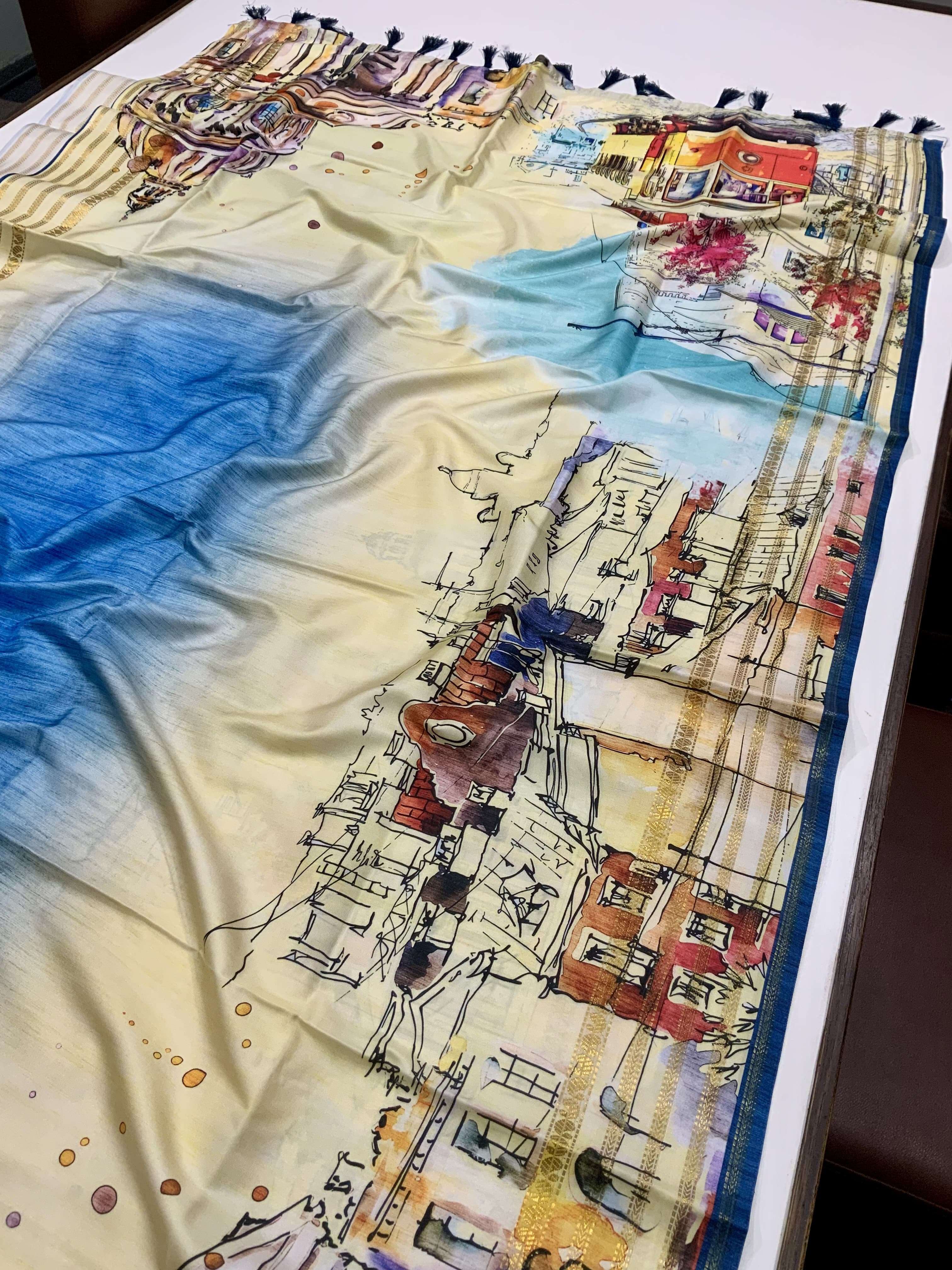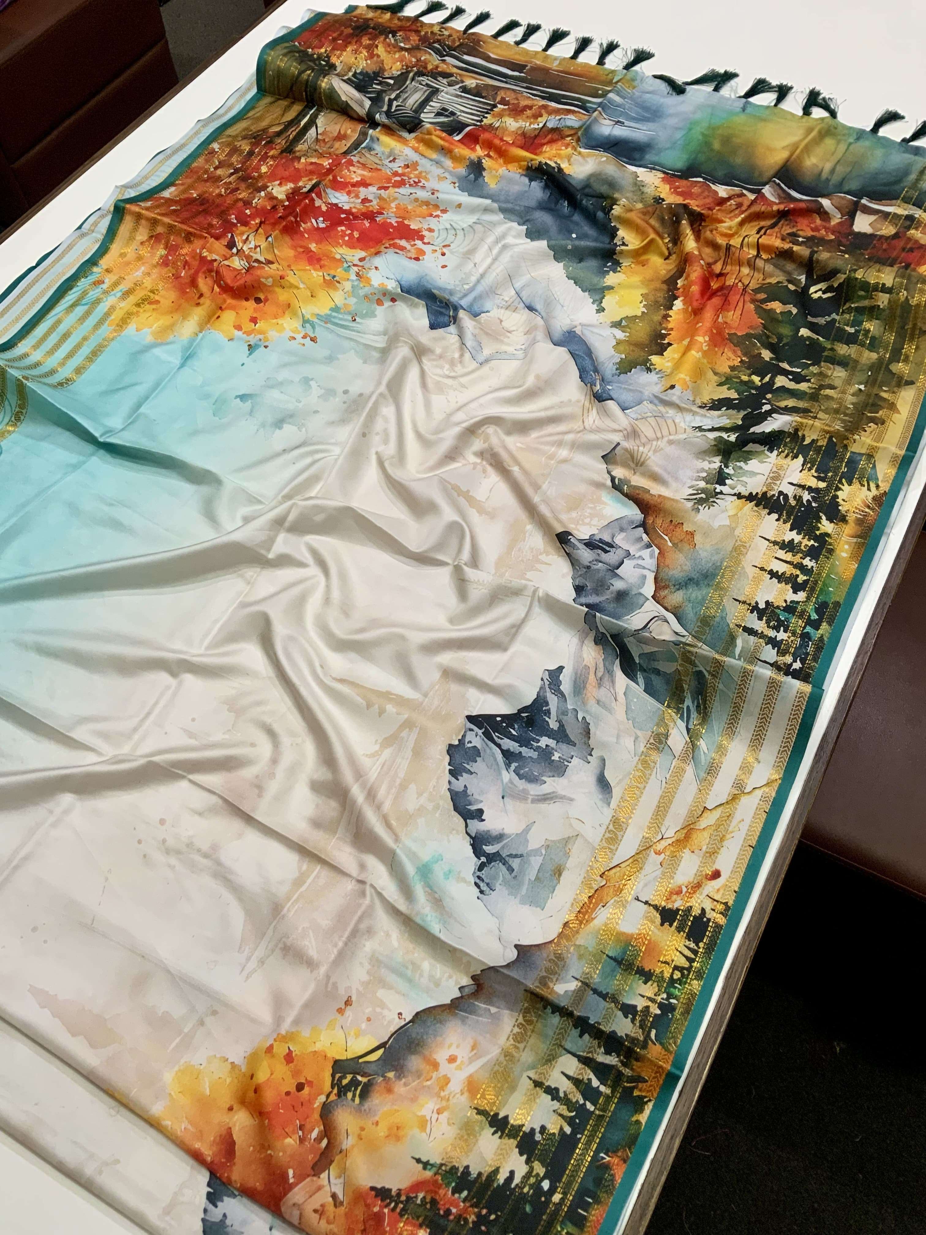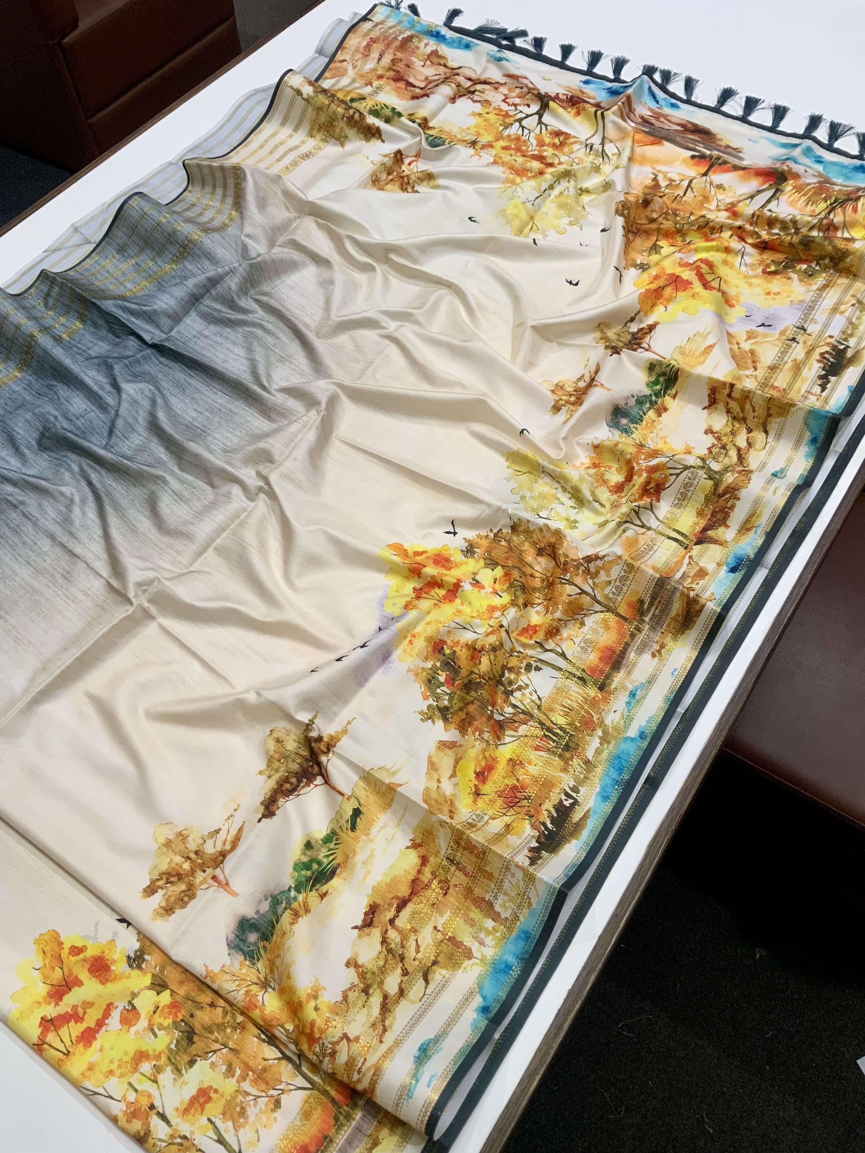 Japanese Freehand digital print Soft Silk Saree collection manufacturer surat