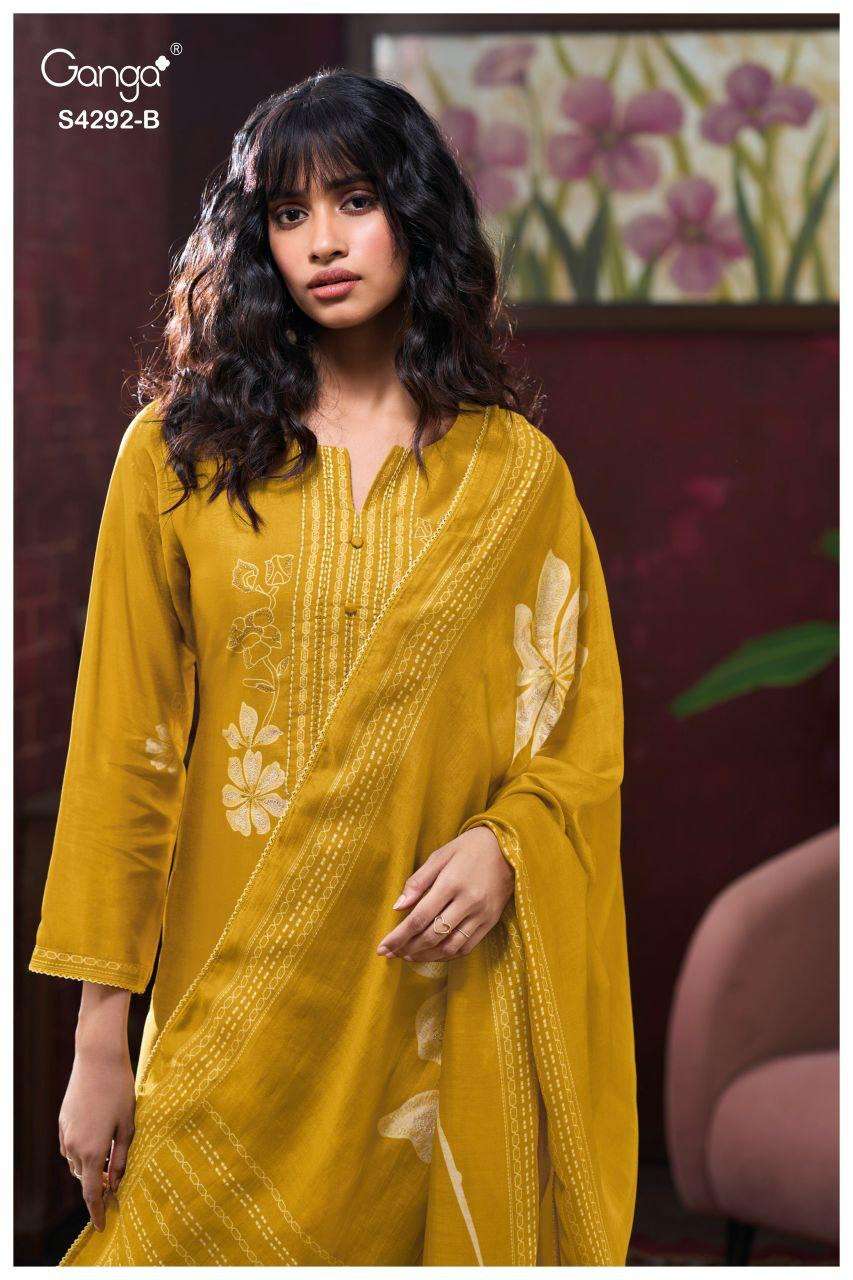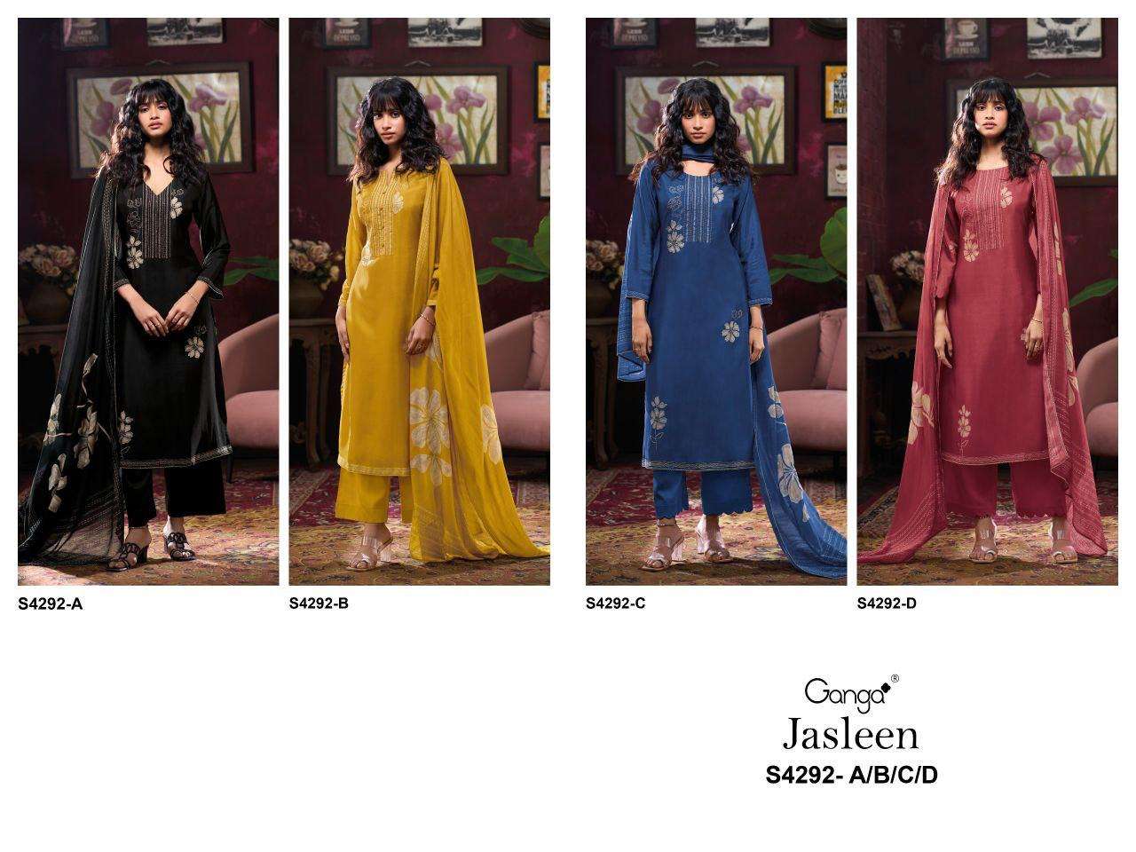 Buy Online JASLEEN 4292 by GANGA suit collection manufacturers surat 4 Pcs of Full Catalogue at Wholesale Price. Looking for JASLEEN 4292 by GANGA suit collection manufacturers surat Full Catalouge at Best Price? Buy Now JASLEEN 4292 by GANGA suit collection manufacturers surat at Wholesale Rate of Rs 9400 with Total 4 Pcs from authroized dealer and supplier of BRAND'S Brand. Cost of Each piece is just only Rs 2350 which is very low and affordable price to resale the product in your retail store ,This is Surat based Wholesale Supplier & Dealer of BRAND'S Brand. Click on Brand name to Know more about BRAND'S Brand's products.Call or Whatsapp on 9898838984 for booking or enquiry