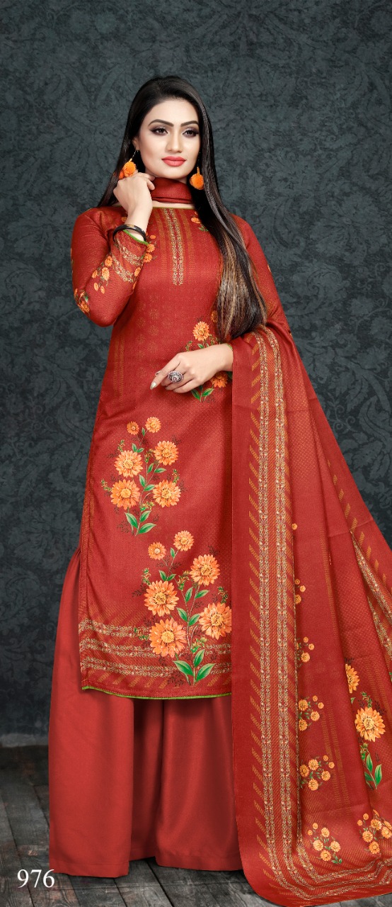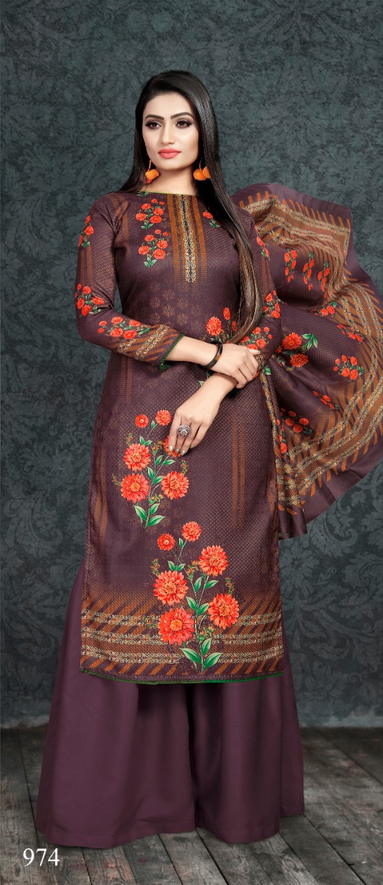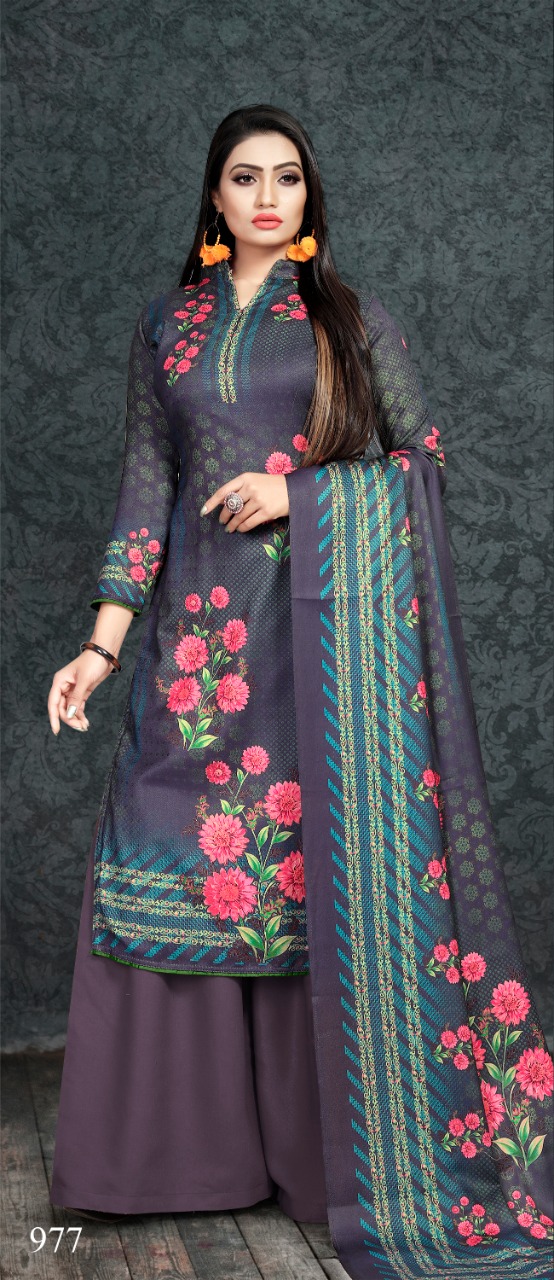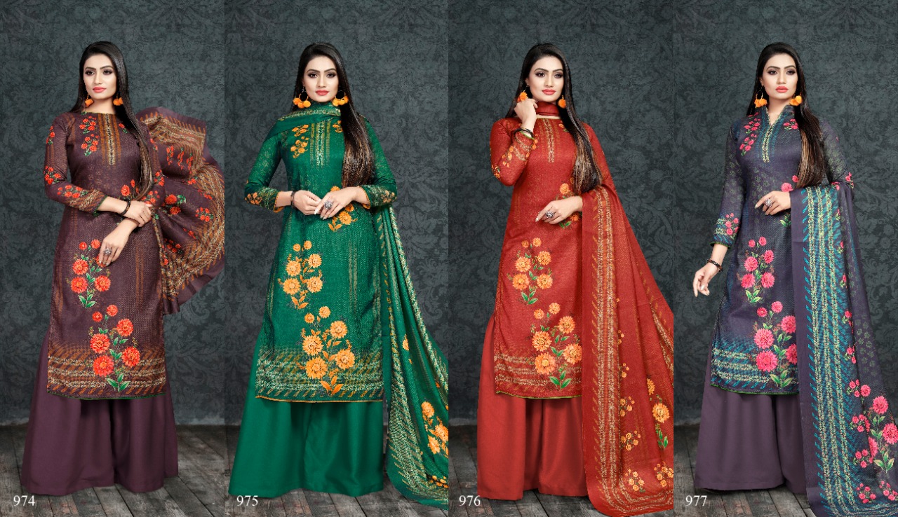*BIPSON* Brings ```WINTER COLLECTION JASMIN -01 974-977 TOP:-Woollen Pashmina Digital Print with Button 2.5mt Bottom Pure Pashmina Dyed 2.5MTR Dupatta Pashmina Shawl Digital Print 2.25 MTR @ 695 /- Only per pcs Set to set . Delivery from tomorrow.. |