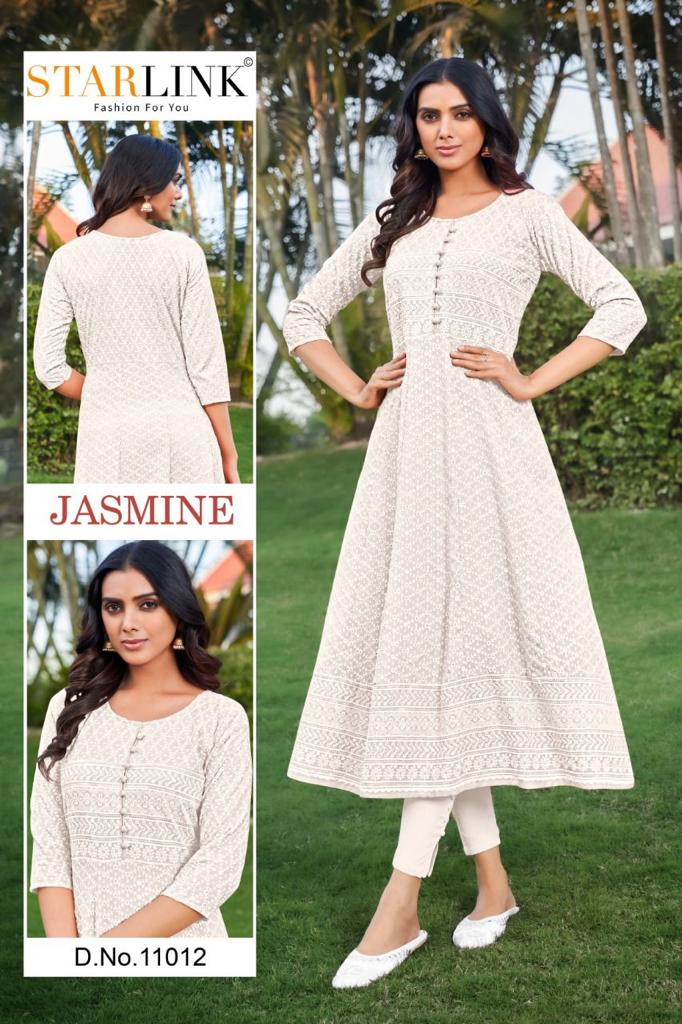 *NEW LAUNCH* ?? *"We"* are happy to announce the launch of new KURTI & READYMADE. ? Catlouge Name :- *Jasmine* ?Description? ?FABRIC- TOP-RAYON WITH SHIFFLI WORK ?Beautiful *8* COLOURS Length - 46Â? *Size M L XL XXL* Dispatch 2-3 Days later 100+single |