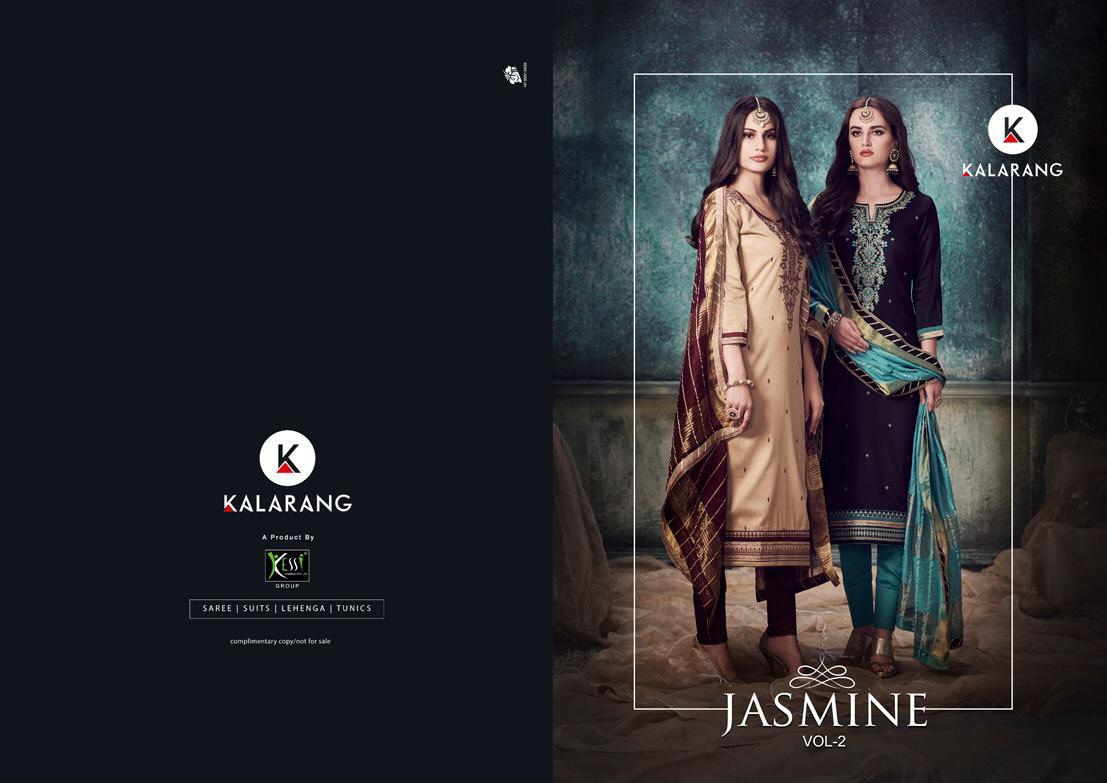Buy Online Jasmine Vol 2 By Kalarang Series 581 To 584 Jam Silk Embroidered Designer Suits Wholesale Supplier Gujarat 4 Pcs of Full Catalogue at Wholesale Price. Looking for Jasmine Vol 2 By Kalarang Series 581 To 584 Jam Silk Embroidered Designer Suits Wholesale Supplier Gujarat Full Catalouge at Best Price? Buy Now Jasmine Vol 2 By Kalarang Series 581 To 584 Jam Silk Embroidered Designer Suits Wholesale Supplier Gujarat at Wholesale Rate of Rs 3000 with Total 4 Pcs from authroized dealer and supplier of KALARANG Brand. Cost of Each piece is just only Rs 750 which is very low and affordable price to resale the product in your retail store ,This is Surat based Wholesale Supplier & Dealer of KALARANG Brand. Click on Brand name to Know more about KALARANG Brand's products.Call or Whatsapp on 9898838984 for booking or enquiry