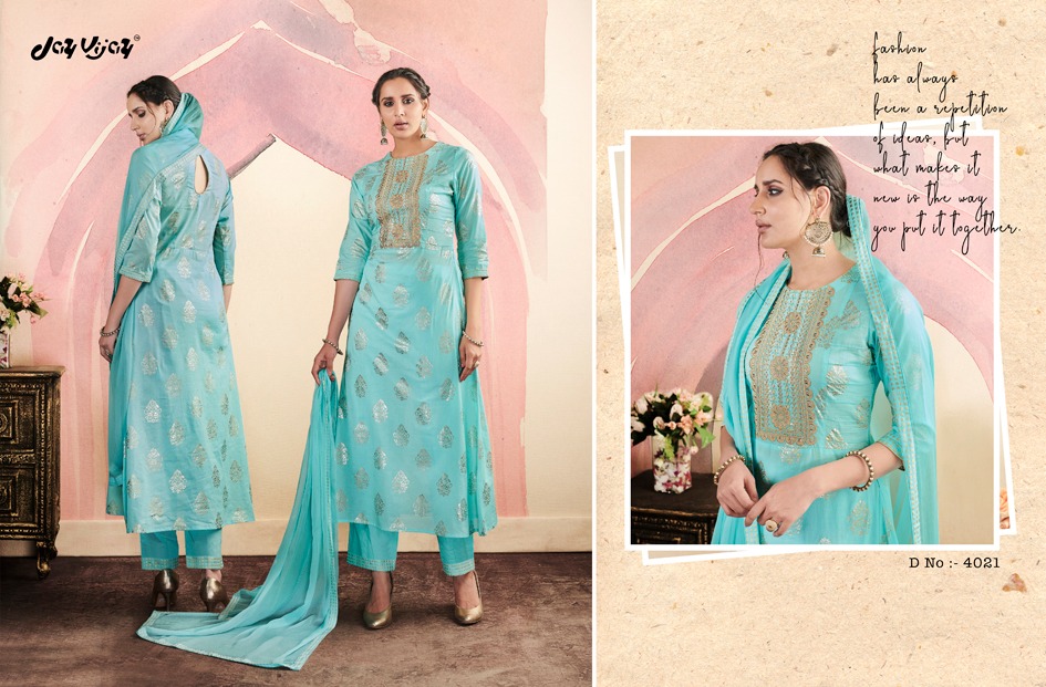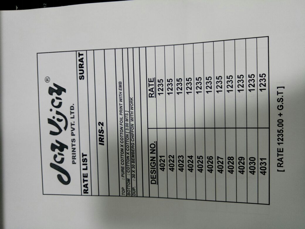 Buy Online Jay Vijay Iris Vol 2 4021 Series Cotton Print Suit Dealer 11 Pcs of Full Catalogue at Wholesale Price. Looking for Jay Vijay Iris Vol 2 4021 Series Cotton Print Suit Dealer Full Catalouge at Best Price? Buy Now Jay Vijay Iris Vol 2 4021 Series Cotton Print Suit Dealer at Wholesale Rate of Rs 13585 with Total 11 Pcs from authroized dealer and supplier of JAY VIJAY Brand. Cost of Each piece is just only Rs 1235 which is very low and affordable price to resale the product in your retail store ,This is Surat based Wholesale Supplier & Dealer of JAY VIJAY Brand. Click on Brand name to Know more about JAY VIJAY Brand's products.Call or Whatsapp on 9898838984 for booking or enquiry