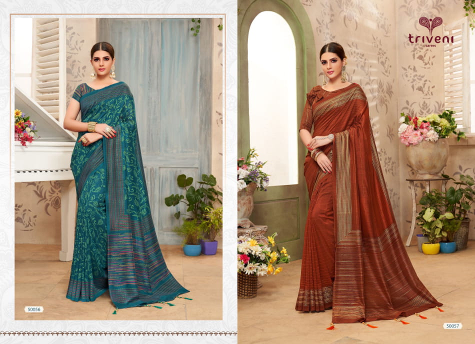 Brand - Triveni. Catlog name - JAYMALA. Rate -631 per pcs . Fabric- Vichitra. Set To Set . GST 5 Percent Extra. Delivery from tomorrow |