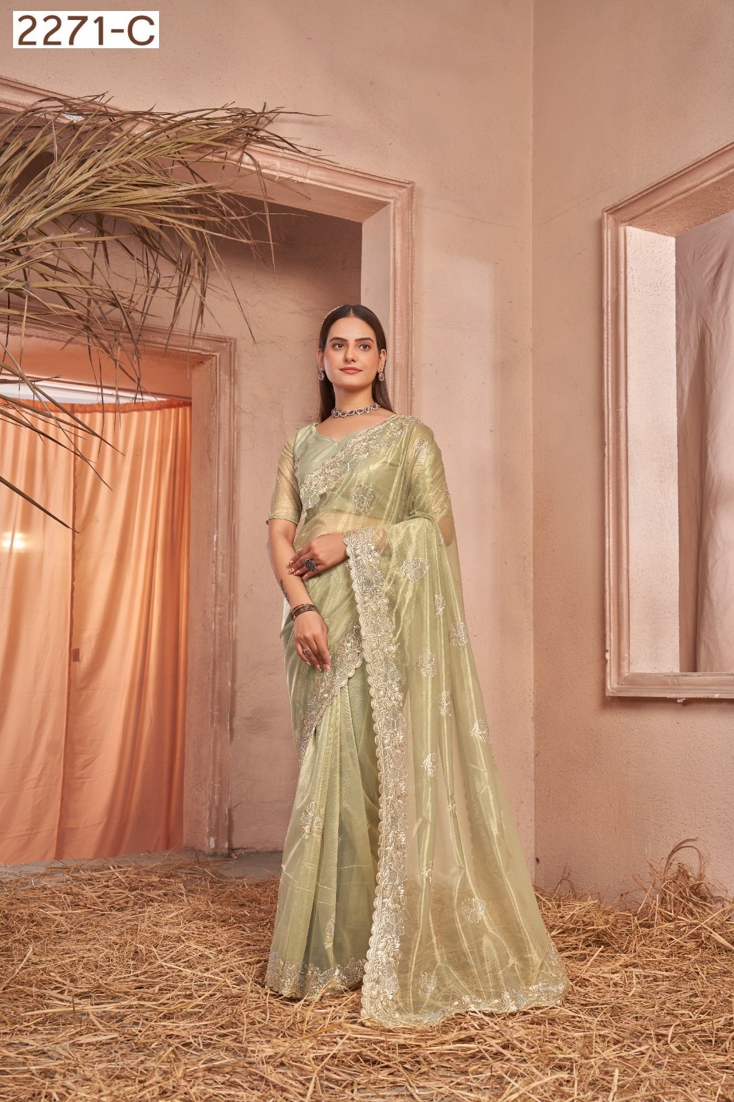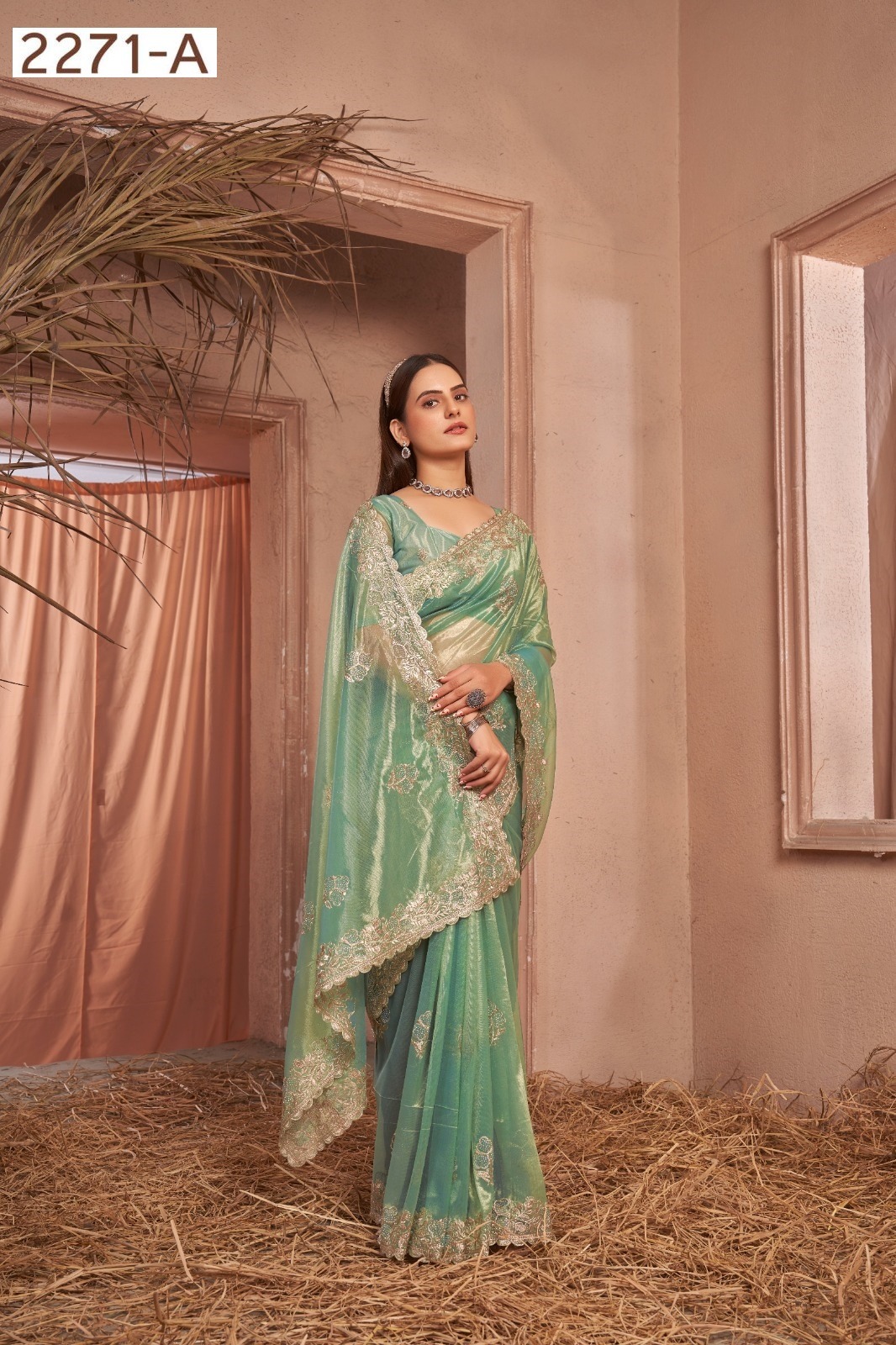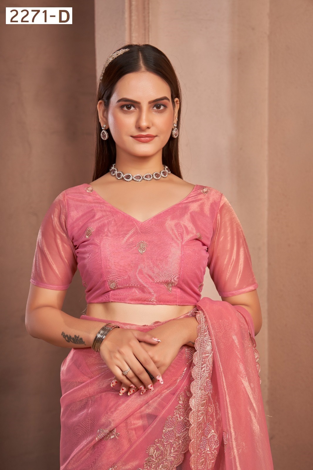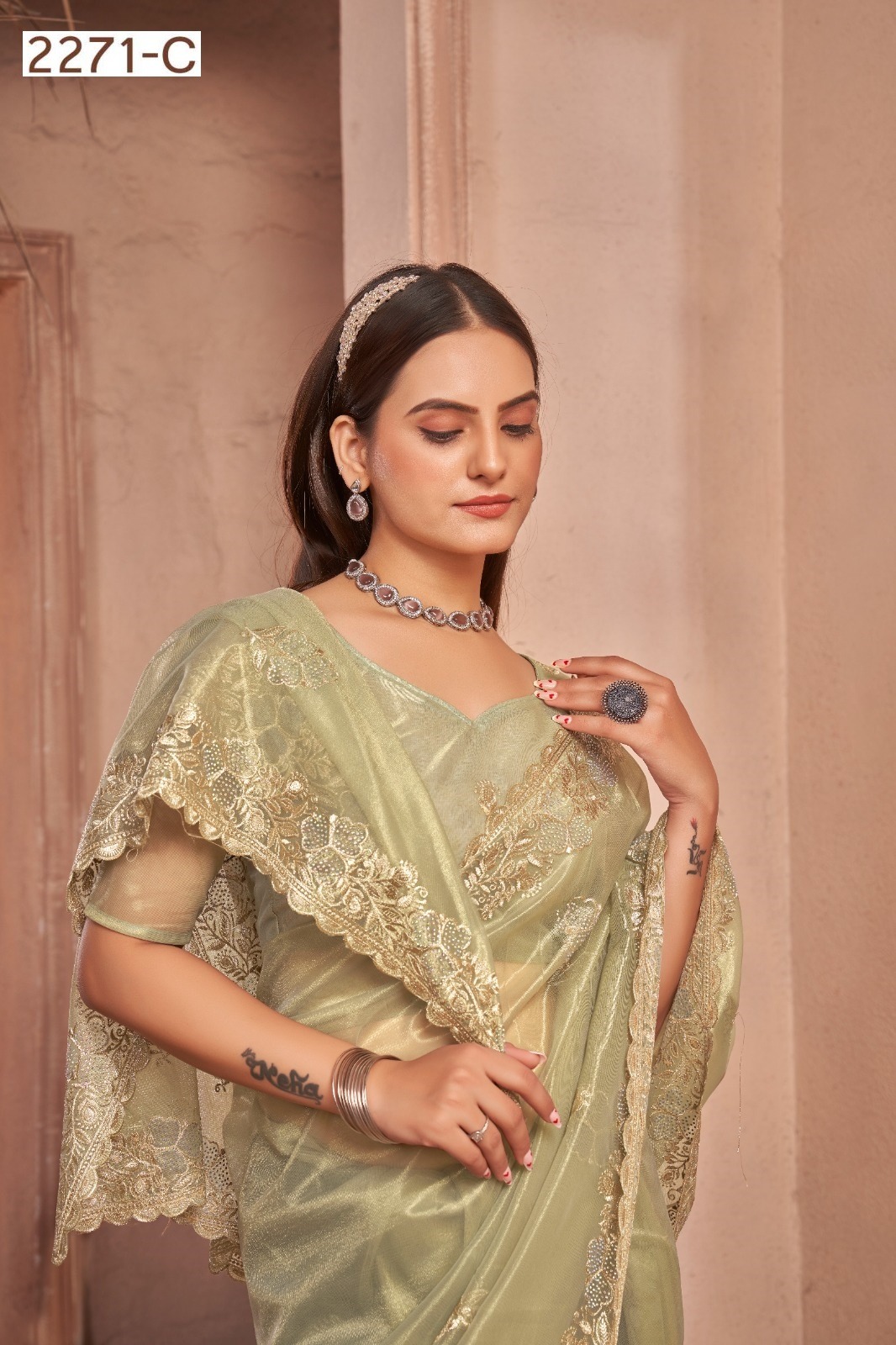 Buy Online Jayshree New Design 2271a To 2271d Simmer Silver Net Saree 4 Pcs of Full Catalogue at Wholesale Price. Looking for Jayshree New Design 2271a To 2271d Simmer Silver Net Saree Full Catalouge at Best Price? Buy Now Jayshree New Design 2271a To 2271d Simmer Silver Net Saree at Wholesale Rate of Rs 3480 with Total 4 Pcs from authroized dealer and supplier of Brand. Cost of Each piece is just only Rs 870 which is very low and affordable price to resale the product in your retail store ,This is Surat based Wholesale Supplier & Dealer of Brand. Click on Brand name to Know more about Brand's products.Call or Whatsapp on 9898838984 for booking or enquiry