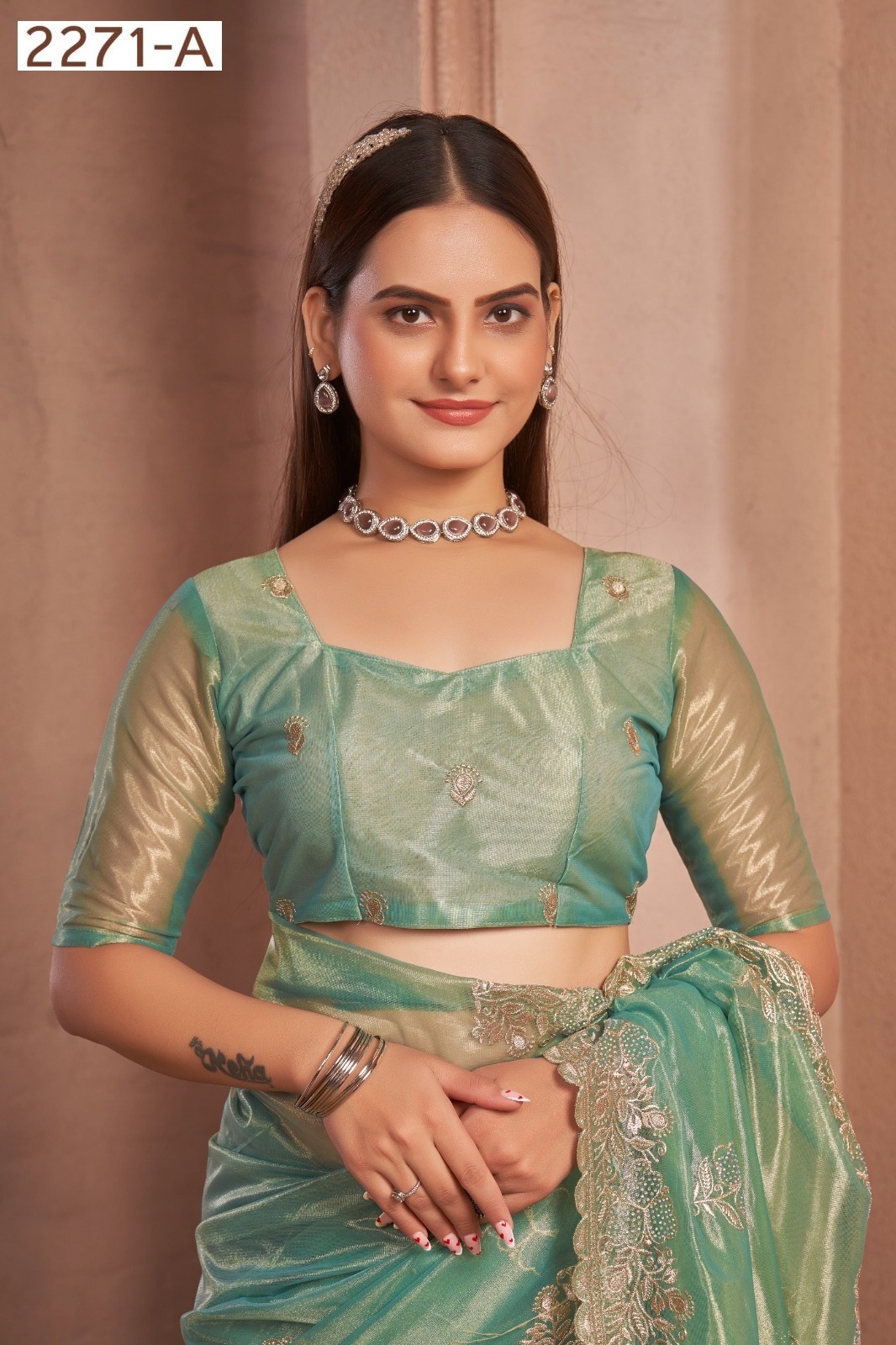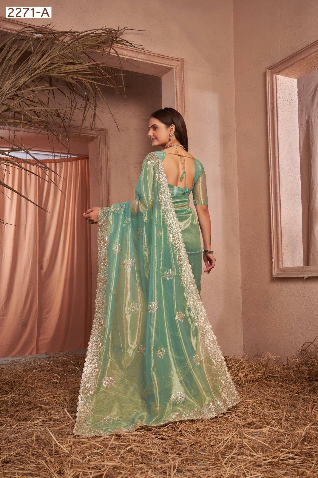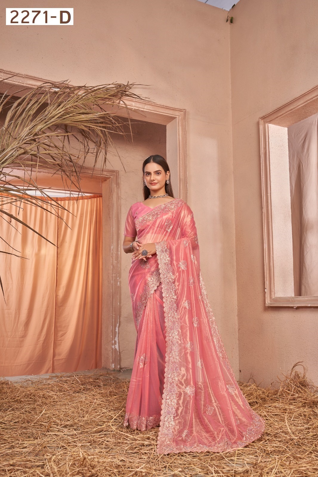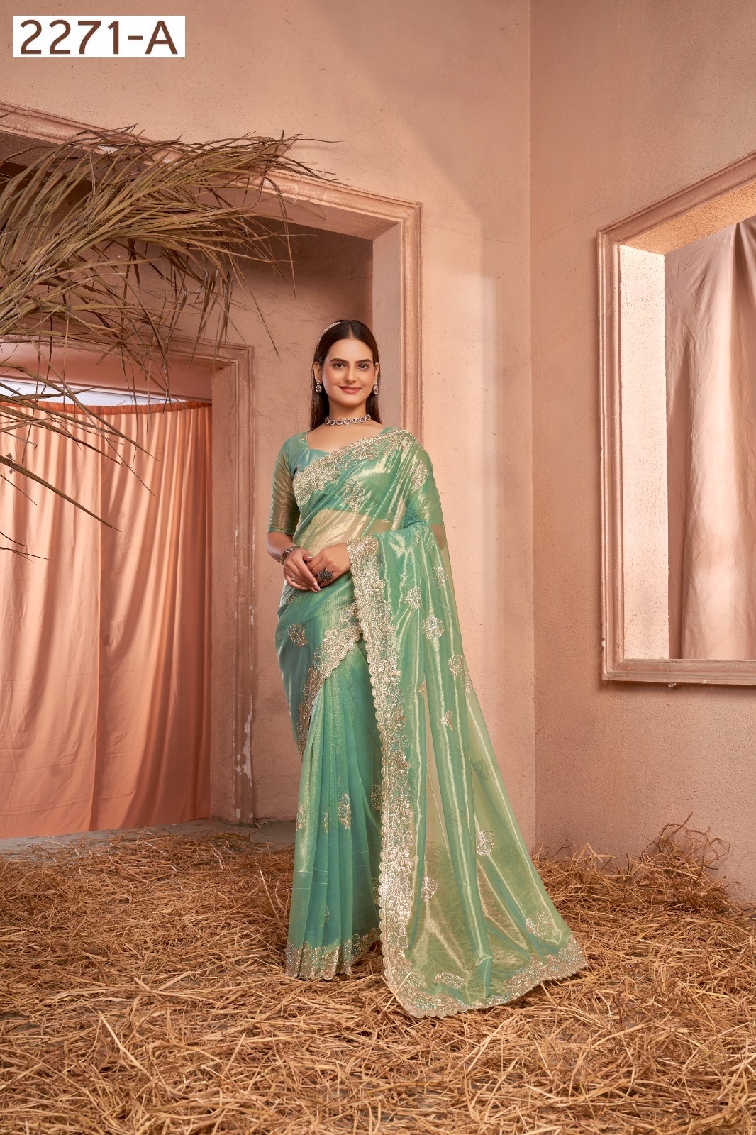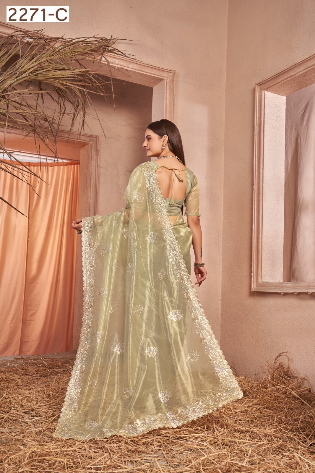 Buy Online Jayshree New Design 2271a To 2271d Simmer Silver Net Saree 4 Pcs of Full Catalogue at Wholesale Price. Looking for Jayshree New Design 2271a To 2271d Simmer Silver Net Saree Full Catalouge at Best Price? Buy Now Jayshree New Design 2271a To 2271d Simmer Silver Net Saree at Wholesale Rate of Rs 3480 with Total 4 Pcs from authroized dealer and supplier of Brand. Cost of Each piece is just only Rs 870 which is very low and affordable price to resale the product in your retail store ,This is Surat based Wholesale Supplier & Dealer of Brand. Click on Brand name to Know more about Brand's products.Call or Whatsapp on 9898838984 for booking or enquiry