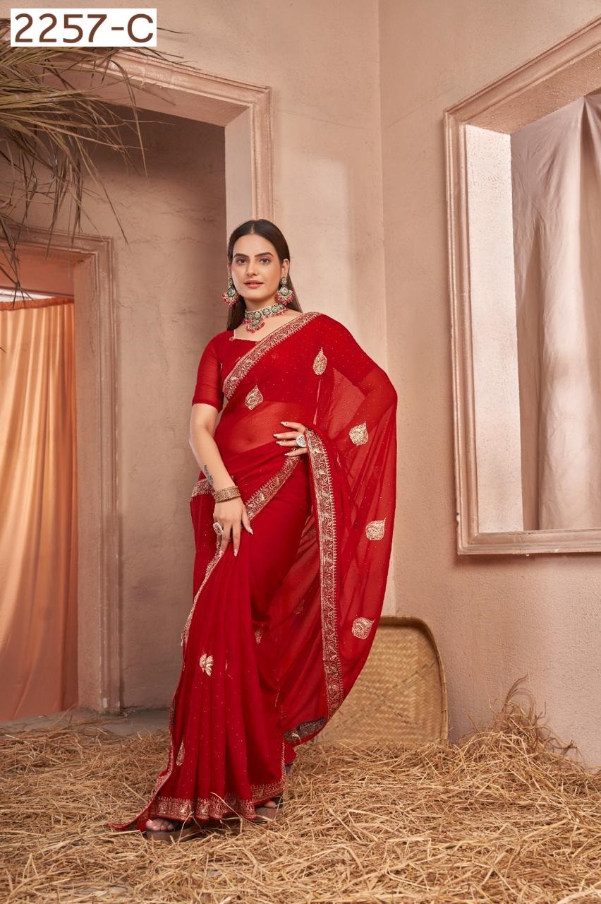Jayshree Saree New Series 2257 Chiffon Woth Fancy Work Sarees Collection Surat
