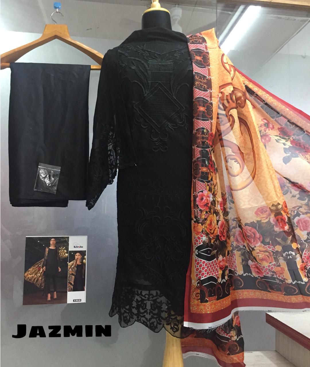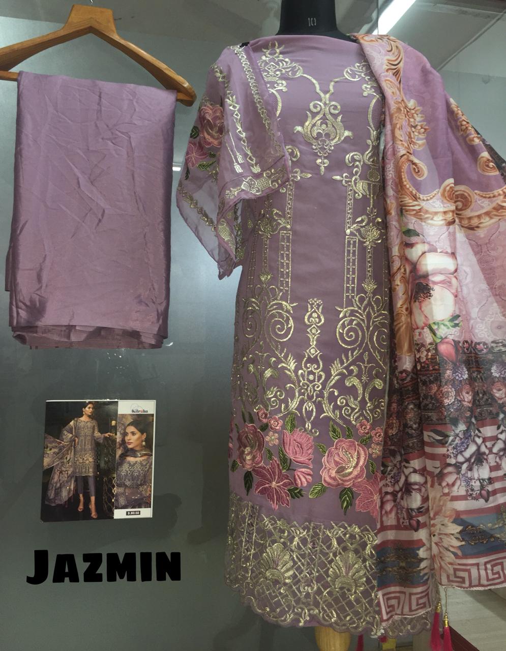 Buy Online Jazmin Luxury Collection Nx By Kilruba 01 Series Fancy Georgette Embroidery Salwar Kameez Catlog Wholesaler Surat 4 Pcs of Full Catalogue at Wholesale Price. Looking for Jazmin Luxury Collection Nx By Kilruba 01 Series Fancy Georgette Embroidery Salwar Kameez Catlog Wholesaler Surat Full Catalouge at Best Price? Buy Now Jazmin Luxury Collection Nx By Kilruba 01 Series Fancy Georgette Embroidery Salwar Kameez Catlog Wholesaler Surat at Wholesale Rate of Rs 4796 with Total 4 Pcs from authroized dealer and supplier of Brand. Cost of Each piece is just only Rs 1199 which is very low and affordable price to resale the product in your retail store ,This is Surat based Wholesale Supplier & Dealer of Brand. Click on Brand name to Know more about Brand's products.Call or Whatsapp on 9898838984 for booking or enquiry