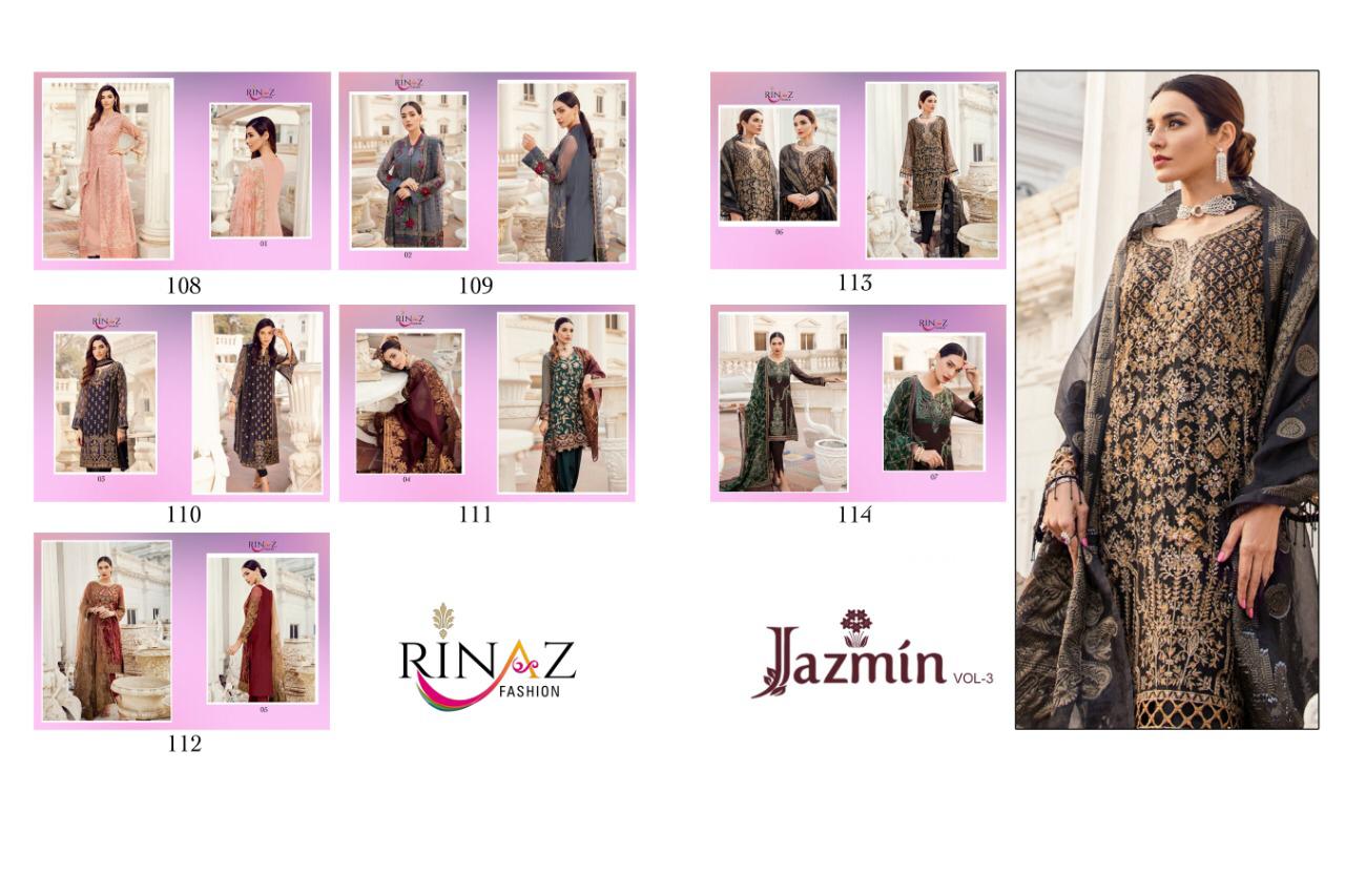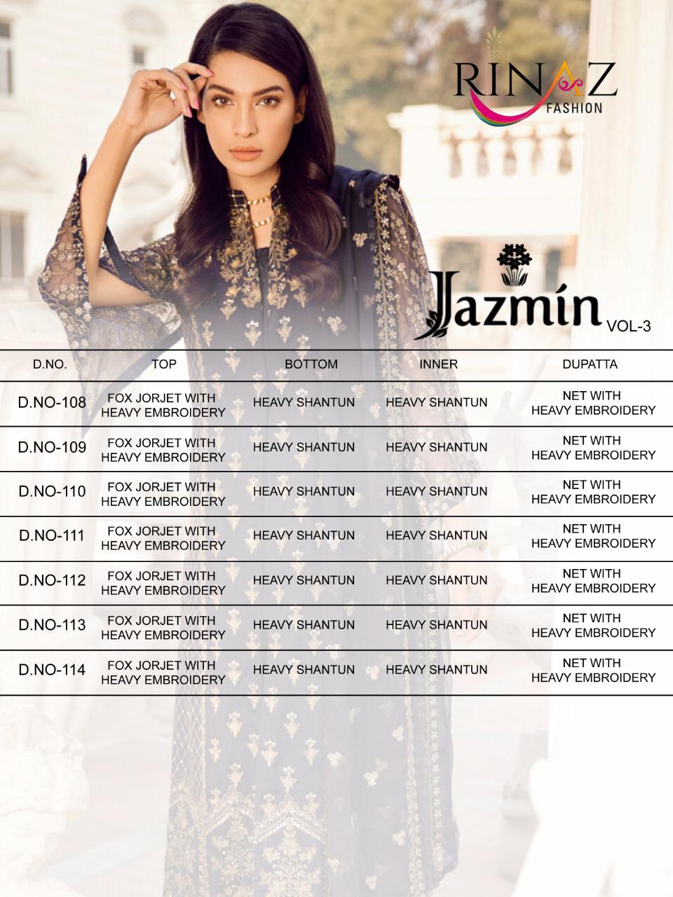 Jazmin Vol 3 By Rinaz 108 Series Fancy Designer Georgette Pakistani Salwar Kameez Catlog Wholesaler Surat