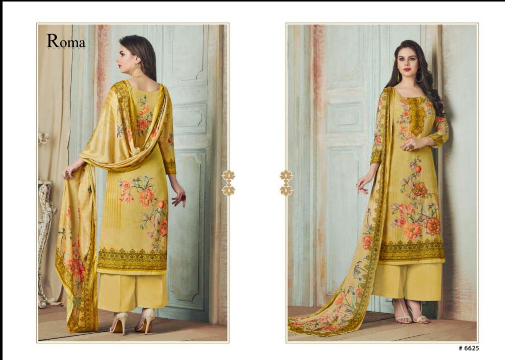 Hello Jdpl surat (india) *Catalog Name: -* ROMA GLANCE Cost Â? INR 14,355 /- for 9 pieces Avg Cost Â? INR 1,595/ *Fabric Details:-* *Top* Digital Printed french Crepe with stone work and ready lace, *Bottom* french Crape, *Dupatta* digital printed poly chinon chiffon *5% GST applicable* Regards *jinaam's dress pvt* surat |