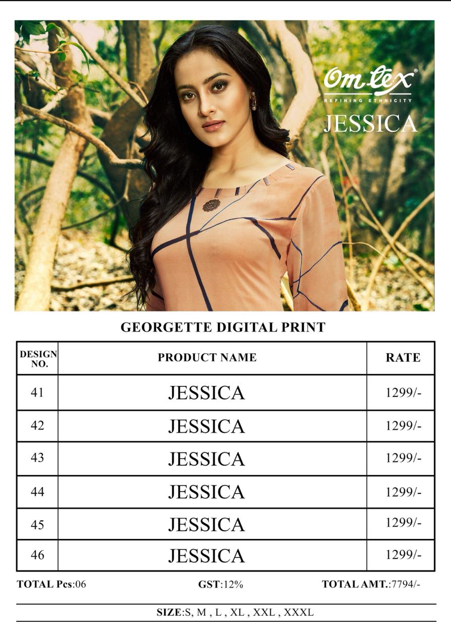 Buy Online Jessica By Omtex Georgette Printed Designer Long Kurtis Wholesale Supplier And Dealer Nitya Nx Gujarat 6 Pcs of Full Catalogue at Wholesale Price. Looking for Jessica By Omtex Georgette Printed Designer Long Kurtis Wholesale Supplier And Dealer Nitya Nx Gujarat Full Catalouge at Best Price? Buy Now Jessica By Omtex Georgette Printed Designer Long Kurtis Wholesale Supplier And Dealer Nitya Nx Gujarat at Wholesale Rate of Rs 7794 with Total 6 Pcs from authroized dealer and supplier of OM TEX Brand. Cost of Each piece is just only Rs 1299 which is very low and affordable price to resale the product in your retail store ,This is Surat based Wholesale Supplier & Dealer of OM TEX Brand. Click on Brand name to Know more about OM TEX Brand's products.Call or Whatsapp on 9898838984 for booking or enquiry