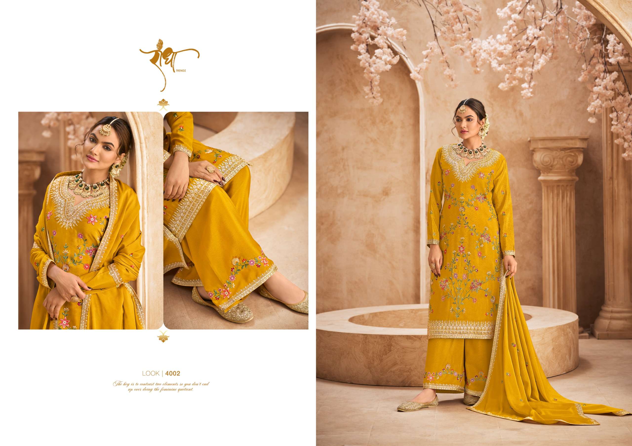 Buy Online JHALAK 1 by RADHA TRENDZ PREMIUM CHINON suit collection manufacturer surat 4 Pcs of Full Catalogue at Wholesale Price. Looking for JHALAK 1 by RADHA TRENDZ PREMIUM CHINON suit collection manufacturer surat Full Catalouge at Best Price? Buy Now JHALAK 1 by RADHA TRENDZ PREMIUM CHINON suit collection manufacturer surat at Wholesale Rate of Rs 8000 with Total 4 Pcs from authroized dealer and supplier of Radha Trendz Brand. Cost of Each piece is just only Rs 2000 which is very low and affordable price to resale the product in your retail store ,This is Surat based Wholesale Supplier & Dealer of Radha Trendz Brand. Click on Brand name to Know more about Radha Trendz Brand's products.Call or Whatsapp on 9898838984 for booking or enquiry