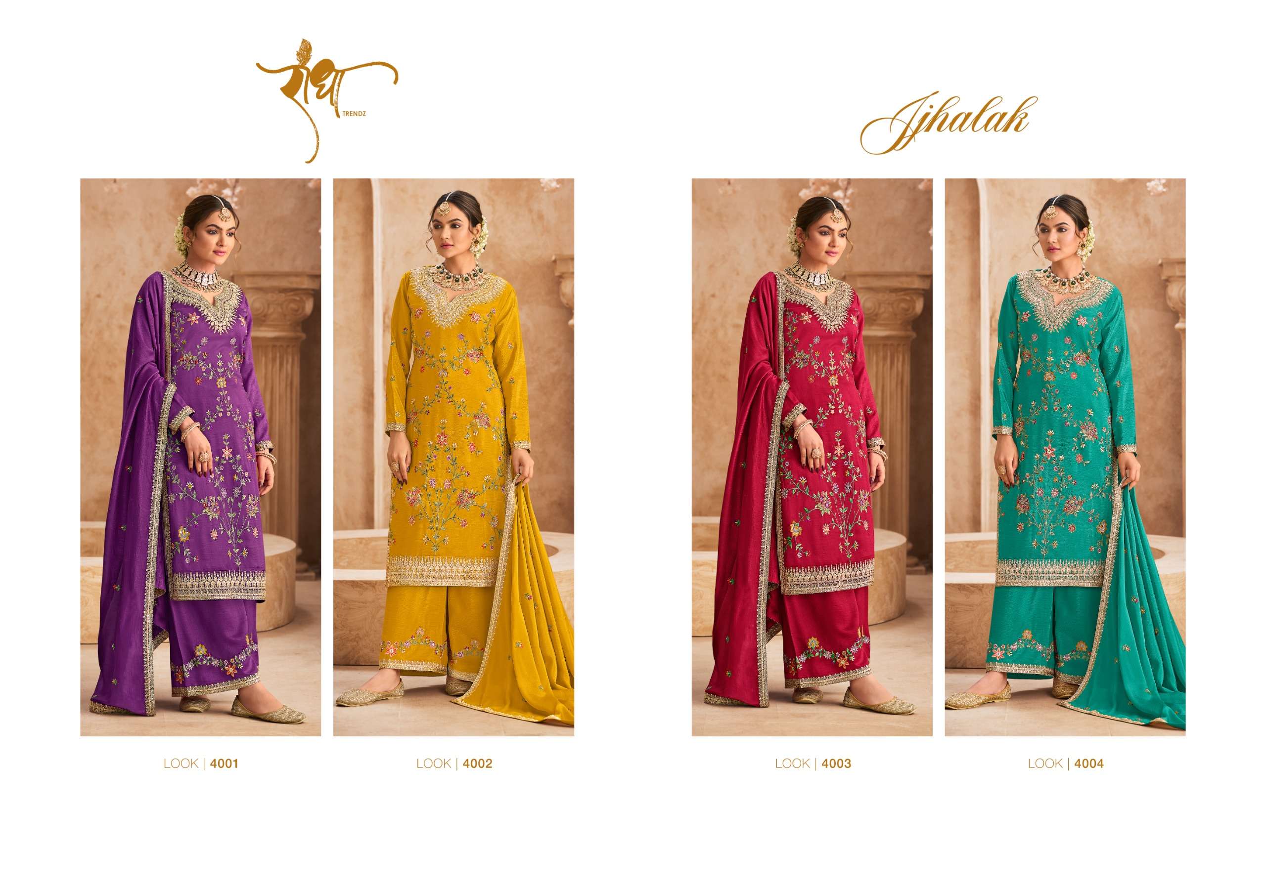 Buy Online JHALAK by RADHA TRENDZ CHINON suit collection manufacturer surat 4 Pcs of Full Catalogue at Wholesale Price. Looking for JHALAK by RADHA TRENDZ CHINON suit collection manufacturer surat Full Catalouge at Best Price? Buy Now JHALAK by RADHA TRENDZ CHINON suit collection manufacturer surat at Wholesale Rate of Rs 7996 with Total 4 Pcs from authroized dealer and supplier of Radha Trendz Brand. Cost of Each piece is just only Rs 1999 which is very low and affordable price to resale the product in your retail store ,This is Surat based Wholesale Supplier & Dealer of Radha Trendz Brand. Click on Brand name to Know more about Radha Trendz Brand's products.Call or Whatsapp on 9898838984 for booking or enquiry
