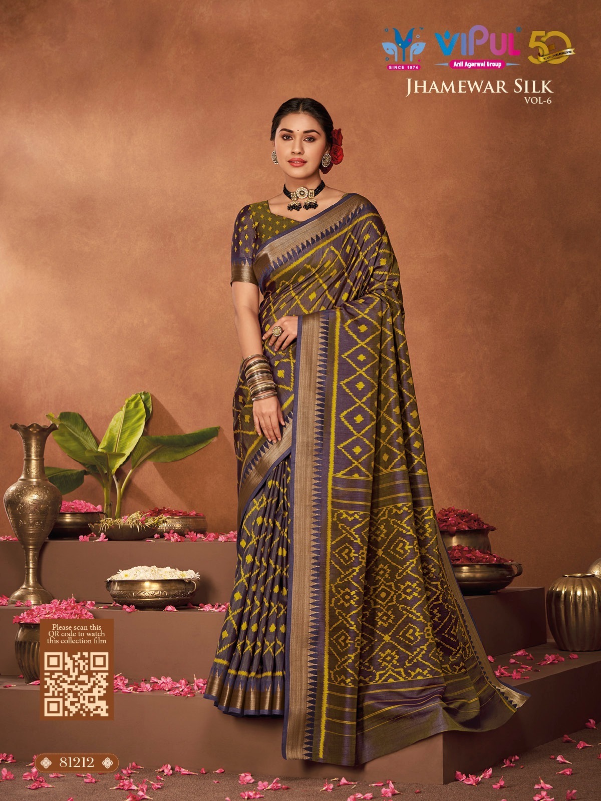 Buy Online Jhamewar Silk Vol 06 Series 81207 To 81218 By Vipul 12 Pcs of Full Catalogue at Wholesale Price. Looking for Jhamewar Silk Vol 06 Series 81207 To 81218 By Vipul Full Catalouge at Best Price? Buy Now Jhamewar Silk Vol 06 Series 81207 To 81218 By Vipul at Wholesale Rate of Rs 11304 with Total 12 Pcs from authroized dealer and supplier of VIPUL Brand. Cost of Each piece is just only Rs 942 which is very low and affordable price to resale the product in your retail store ,This is Surat based Wholesale Supplier & Dealer of VIPUL Brand. Click on Brand name to Know more about VIPUL Brand's products.Call or Whatsapp on 9898838984 for booking or enquiry