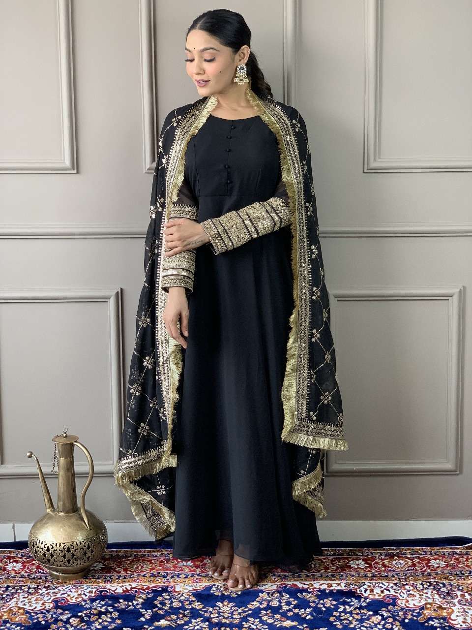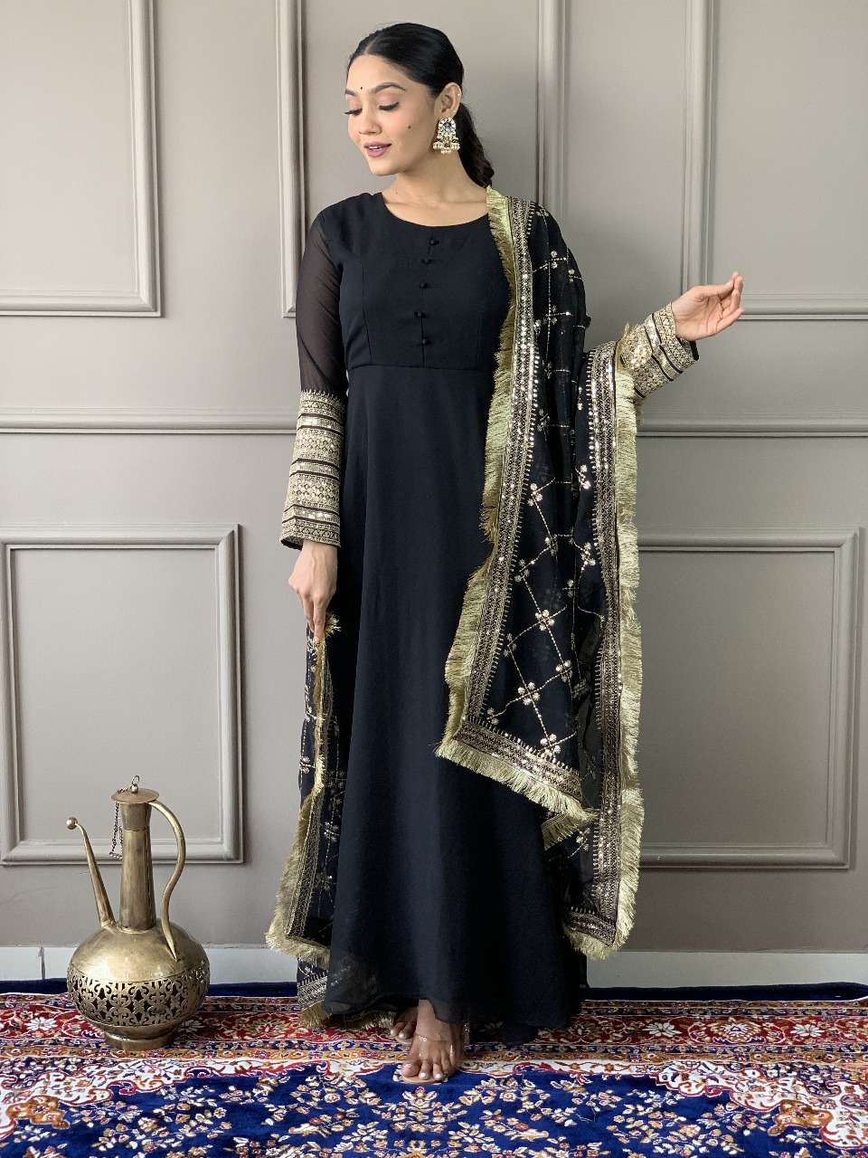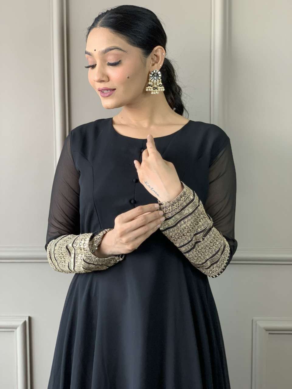 JIYA BLACK Georgette silk kurti set collection manufacturer surat