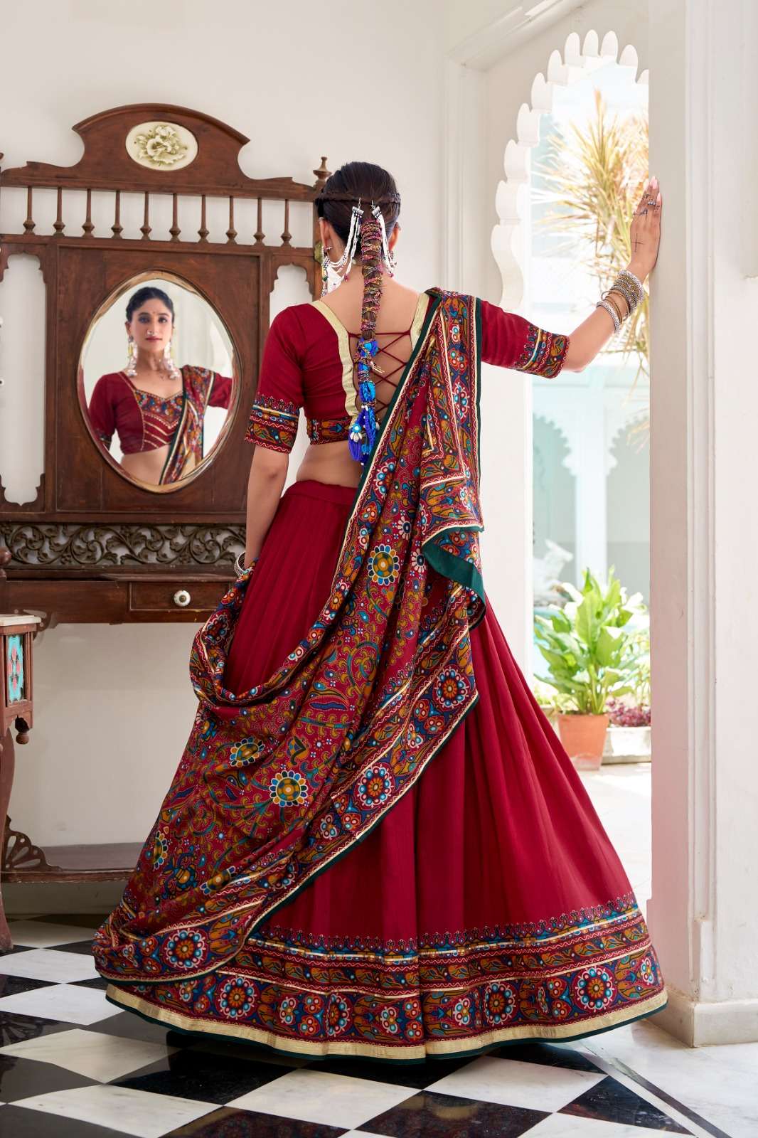 From the looms of tradition to the rhythm of Garba — this Tassar silk lehenga with Gamthi print brings your Navratri dream to life in every swirl 🧿