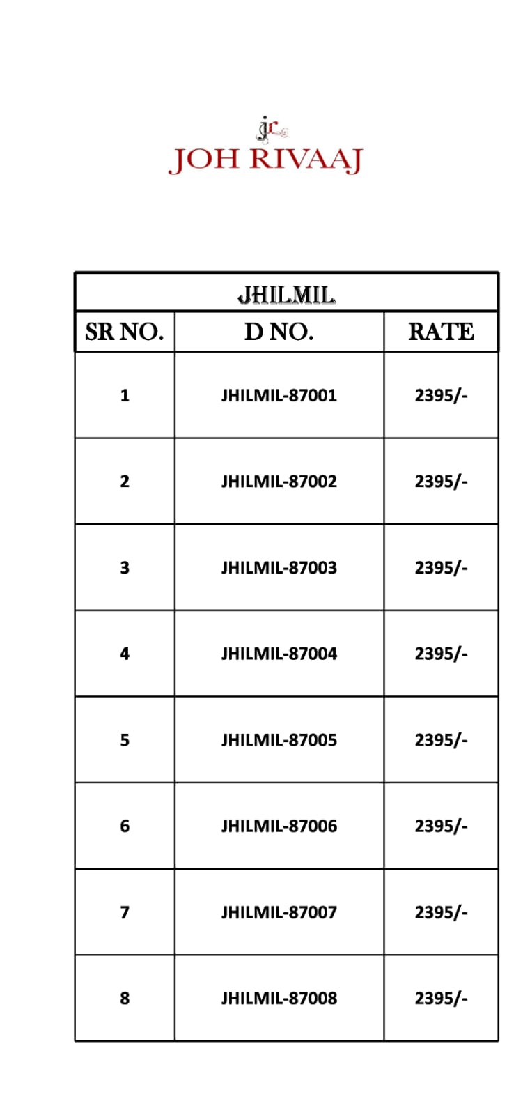 Buy Online Joh Rivaaj New Catalog Jhilmil Fancy Sarees Collection Surat 8 Pcs of Full Catalogue at Wholesale Price. Looking for Joh Rivaaj New Catalog Jhilmil Fancy Sarees Collection Surat Full Catalouge at Best Price? Buy Now Joh Rivaaj New Catalog Jhilmil Fancy Sarees Collection Surat at Wholesale Rate of Rs 19160 with Total 8 Pcs from authroized dealer and supplier of Brand. Cost of Each piece is just only Rs 2395 which is very low and affordable price to resale the product in your retail store ,This is Surat based Wholesale Supplier & Dealer of Brand. Click on Brand name to Know more about Brand's products.Call or Whatsapp on 9898838984 for booking or enquiry