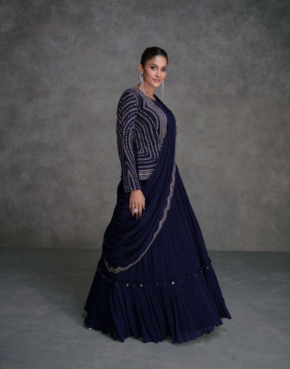 JUGNI NX by SAYURI DESIGNER REAL GEROGETTE gown collection manufacturer surat