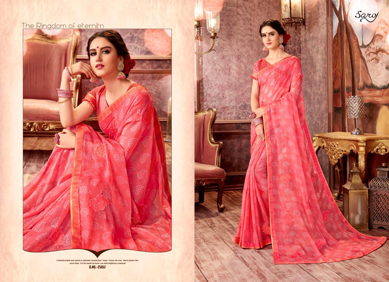 Buy Online Julie 6 By Saroj Chiffon Sarees Wholesale Supplier Gujarat 8 Pcs of Full Catalogue at Wholesale Price. Looking for Julie 6 By Saroj Chiffon Sarees Wholesale Supplier Gujarat Full Catalouge at Best Price? Buy Now Julie 6 By Saroj Chiffon Sarees Wholesale Supplier Gujarat at Wholesale Rate of Rs 7280 with Total 8 Pcs from authroized dealer and supplier of SAROJ SAREE Brand. Cost of Each piece is just only Rs 910 which is very low and affordable price to resale the product in your retail store ,This is Surat based Wholesale Supplier & Dealer of SAROJ SAREE Brand. Click on Brand name to Know more about SAROJ SAREE Brand's products.Call or Whatsapp on 9898838984 for booking or enquiry