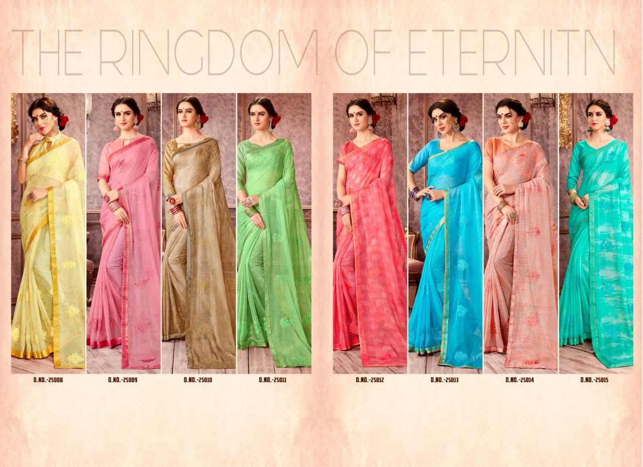 *Julie 6 by Saroj * Rate -910 per pcs Fabric: Chiffon with embroidery. Blouse: Banglori Silk. 8 Designs in set . Set To Set. GST 5 Percent Extra. Delivery from tomorrow |
