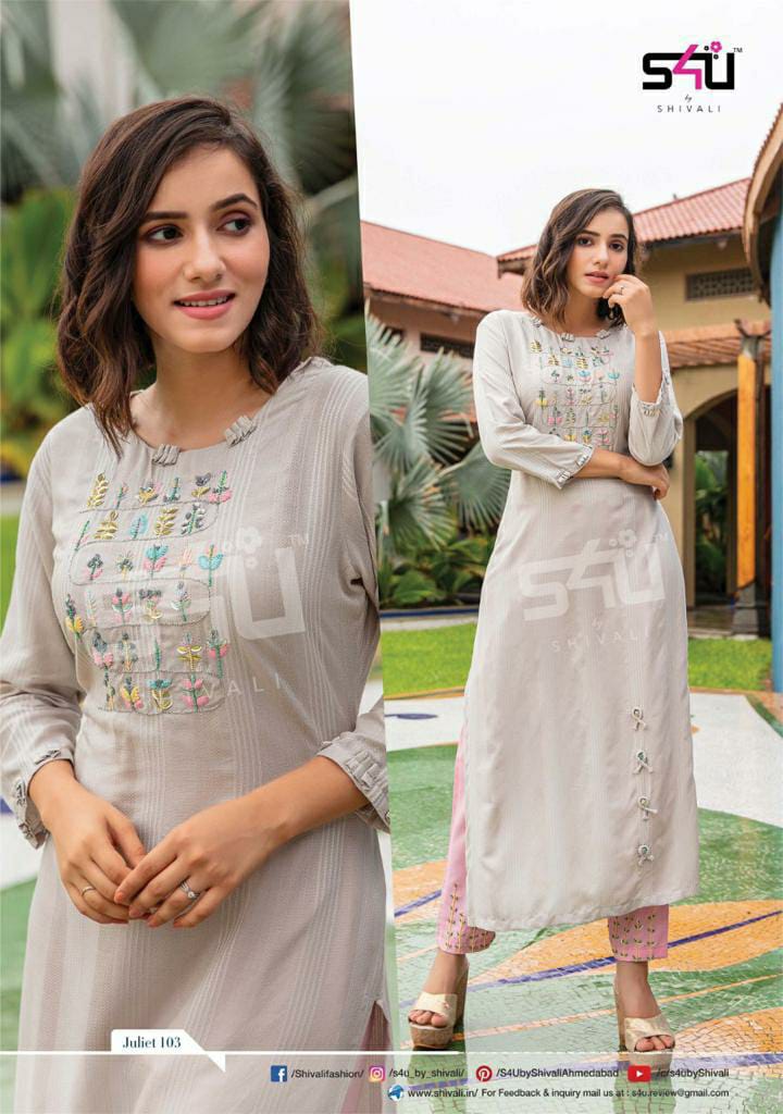 Buy Online Juliet Kurti With Pant By S4u Wholesale Supplier Traders In Surat 6 Pcs of Full Catalogue at Wholesale Price. Looking for Juliet Kurti With Pant By S4u Wholesale Supplier Traders In Surat Full Catalouge at Best Price? Buy Now Juliet Kurti With Pant By S4u Wholesale Supplier Traders In Surat at Wholesale Rate of Rs 5706 with Total 6 Pcs from authroized dealer and supplier of S4U Brand. Cost of Each piece is just only Rs 951 which is very low and affordable price to resale the product in your retail store ,This is Surat based Wholesale Supplier & Dealer of S4U Brand. Click on Brand name to Know more about S4U Brand's products.Call or Whatsapp on 9898838984 for booking or enquiry