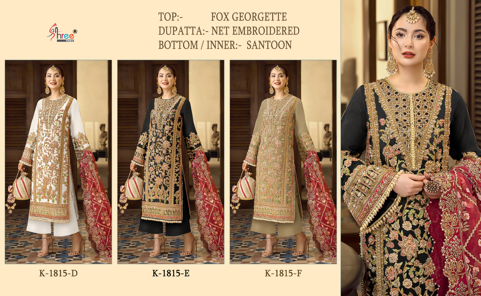 *DESIGN NO.- K .1743 colour *FABRICS* *Top*: Georgette heavy embroidery *Bottom*: dull Santoon(inner) *Dupatta *: najmeen with embroidery *Rate *~ 1250/-* + gst * Special pouch packing* *shree fab surat 100+single |