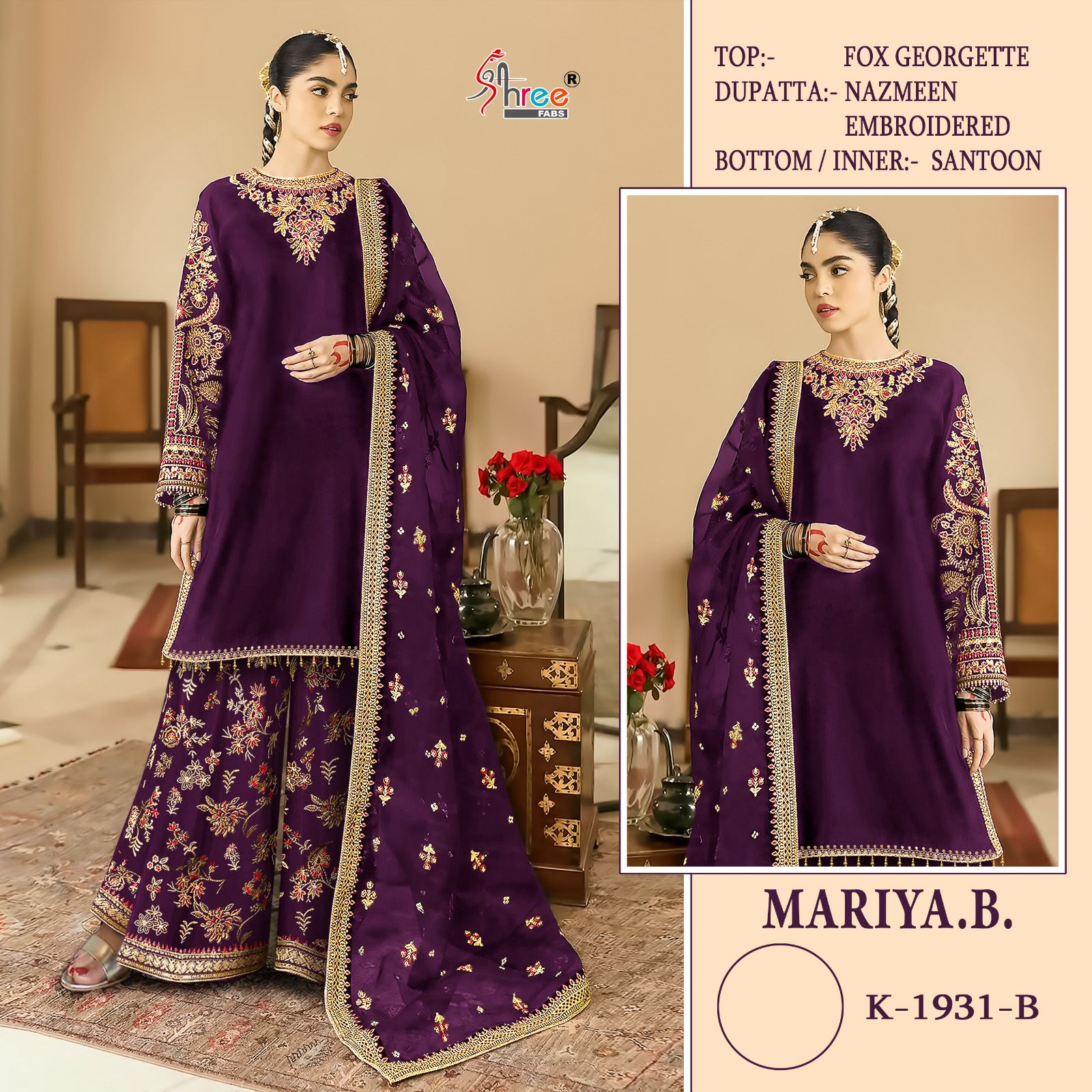 Shree gab present mariya b super design this season K. 1931 Available in jeorgett fabric. Dupta. Najmeen with embroidery Bottom inner santoon Plaza jorjet work *Rate -1260/-* GST SHIP EXTRA 100+single |