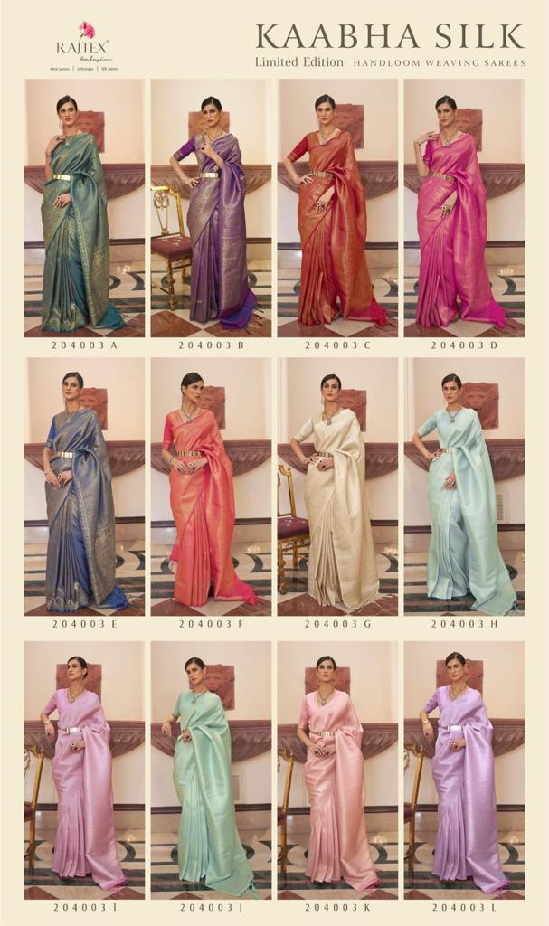 Kaabha Silk Colour By Rajtex Fabric Pure Handloom Weaving Sarees Collection Surat