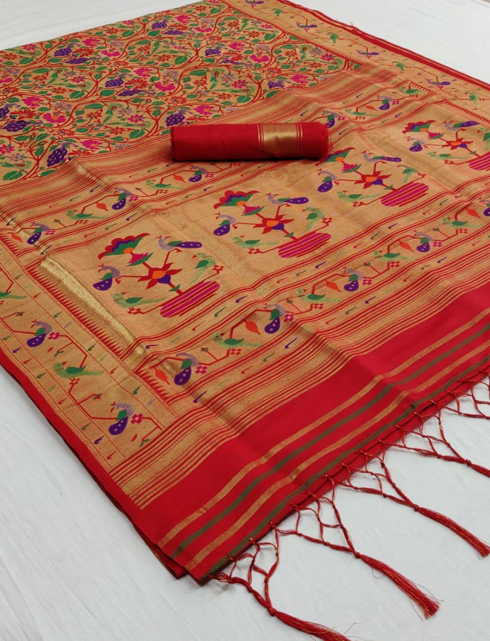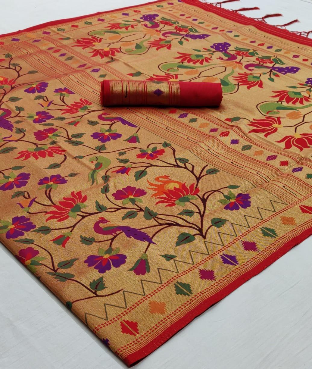 *KAADHIKA SILK * by Raj tex *PURE PAITHANI SILK * _*Design no. 121001,2_* *Per Pcs rate - 1995?* GST 5 Percent Extra. Set & loose & Single extra 100 |
