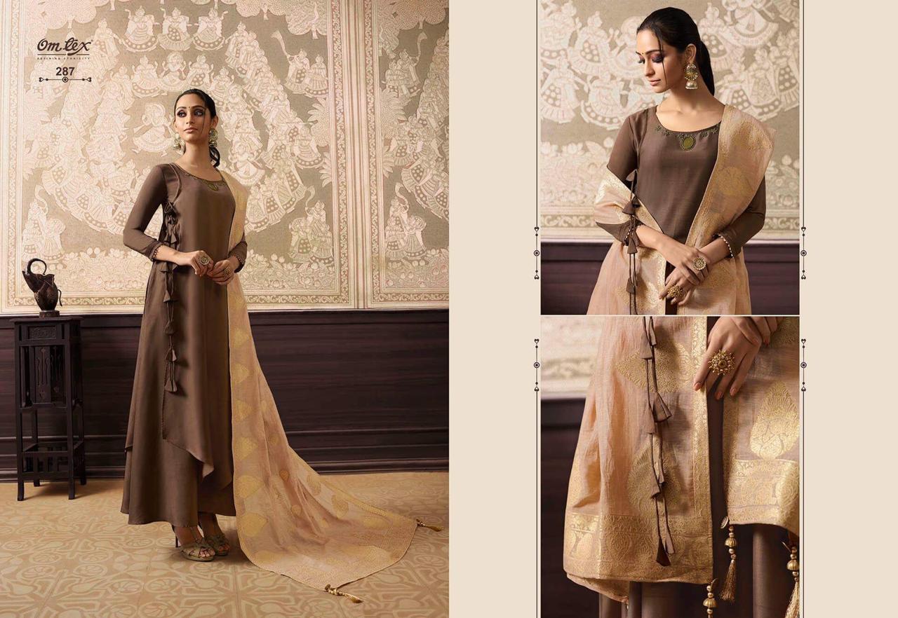 Buy Online Kaavee By Omtex 281 Series Designer Muslin Silk Gown Banarasi Dupatta Collection Wholesaler Surat 9 Pcs of Full Catalogue at Wholesale Price. Looking for Kaavee By Omtex 281 Series Designer Muslin Silk Gown Banarasi Dupatta Collection Wholesaler Surat Full Catalouge at Best Price? Buy Now Kaavee By Omtex 281 Series Designer Muslin Silk Gown Banarasi Dupatta Collection Wholesaler Surat at Wholesale Rate of Rs 16155 with Total 9 Pcs from authroized dealer and supplier of OM TEX Brand. Cost of Each piece is just only Rs 1795 which is very low and affordable price to resale the product in your retail store ,This is Surat based Wholesale Supplier & Dealer of OM TEX Brand. Click on Brand name to Know more about OM TEX Brand's products.Call or Whatsapp on 9898838984 for booking or enquiry