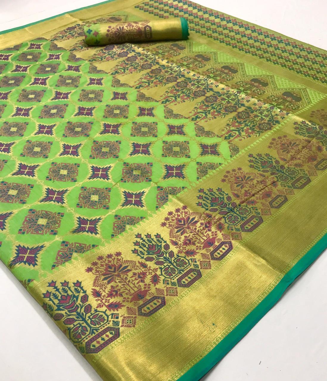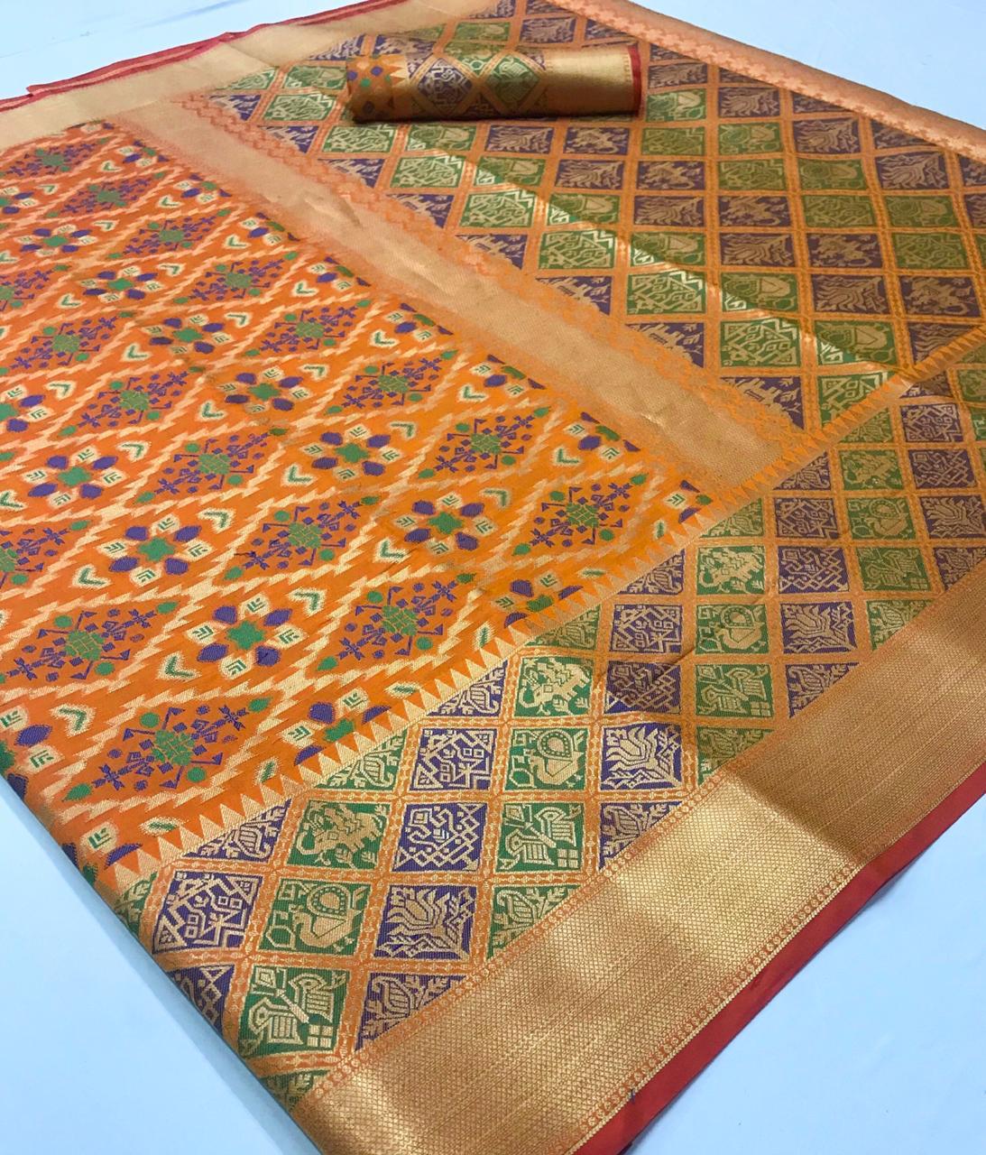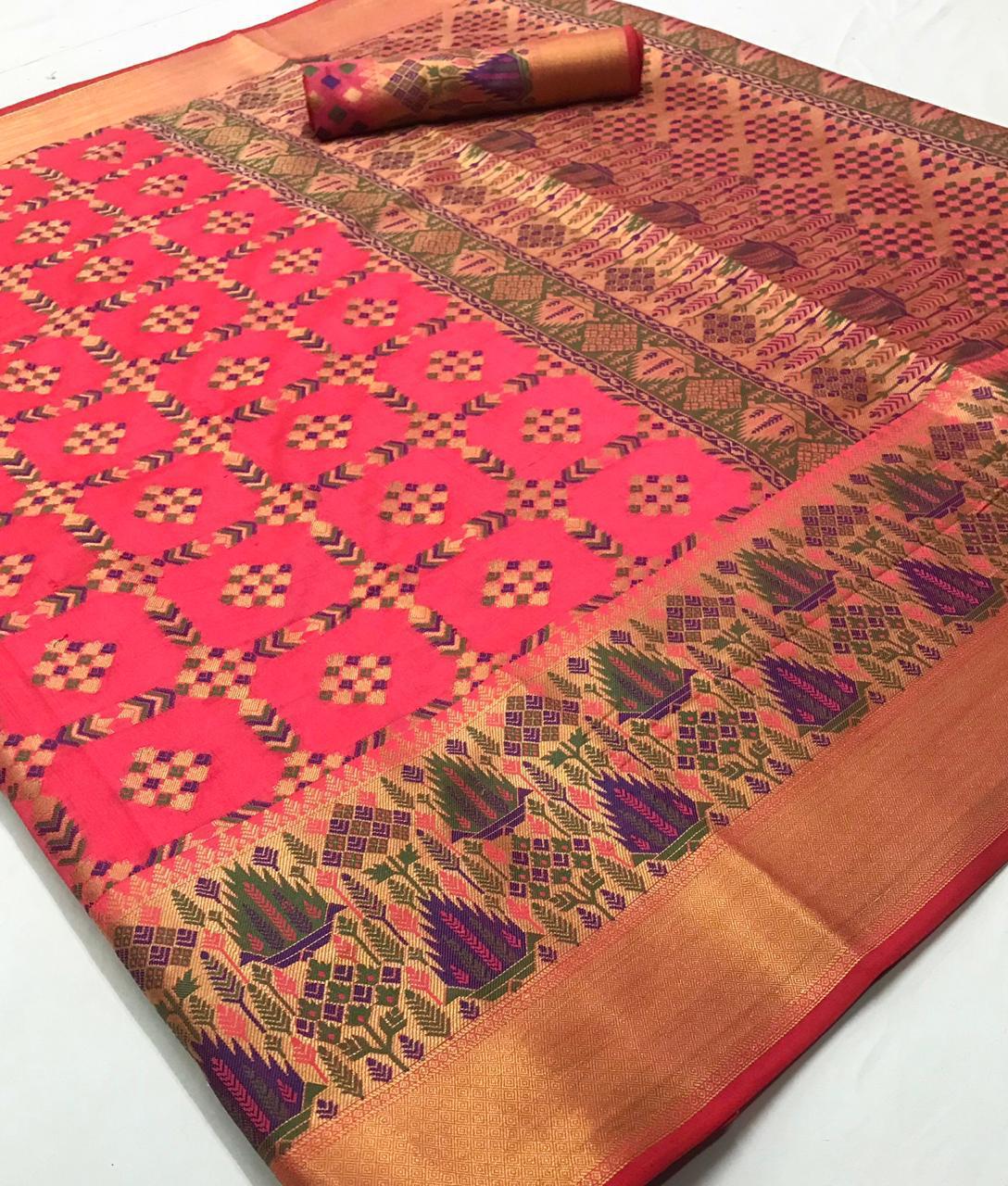 *KADAMPALLI SILK* by Raj Tex _*Heavy Traditonal Patola*_ Rate -1195? per Pcs . Set & Loose. Series -102001 to 102008. GST 5 Percent Extra Delivery from today Single extra ? |