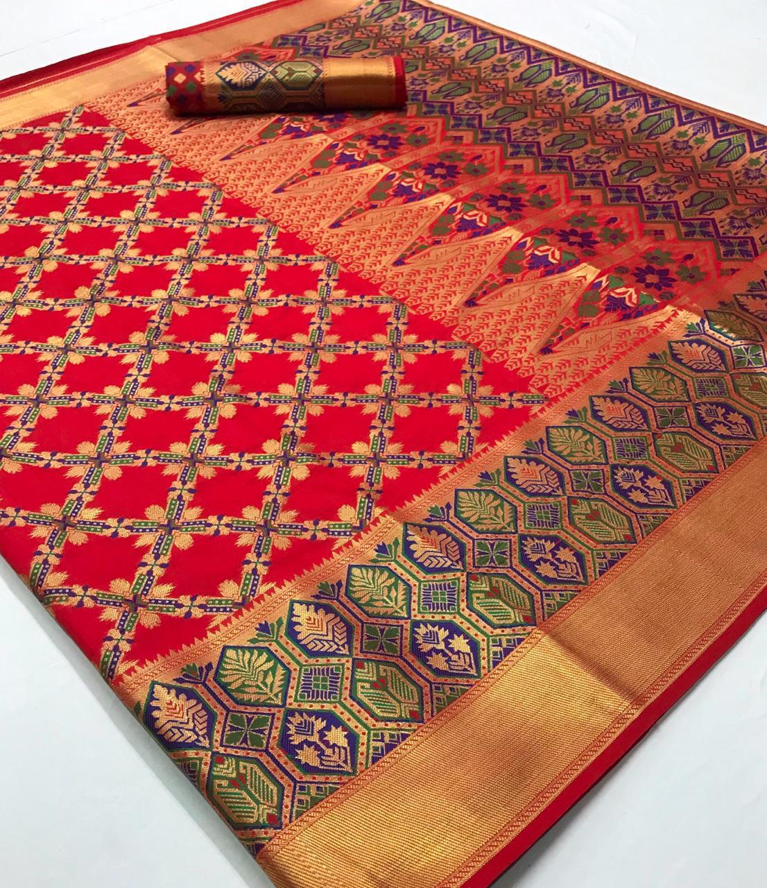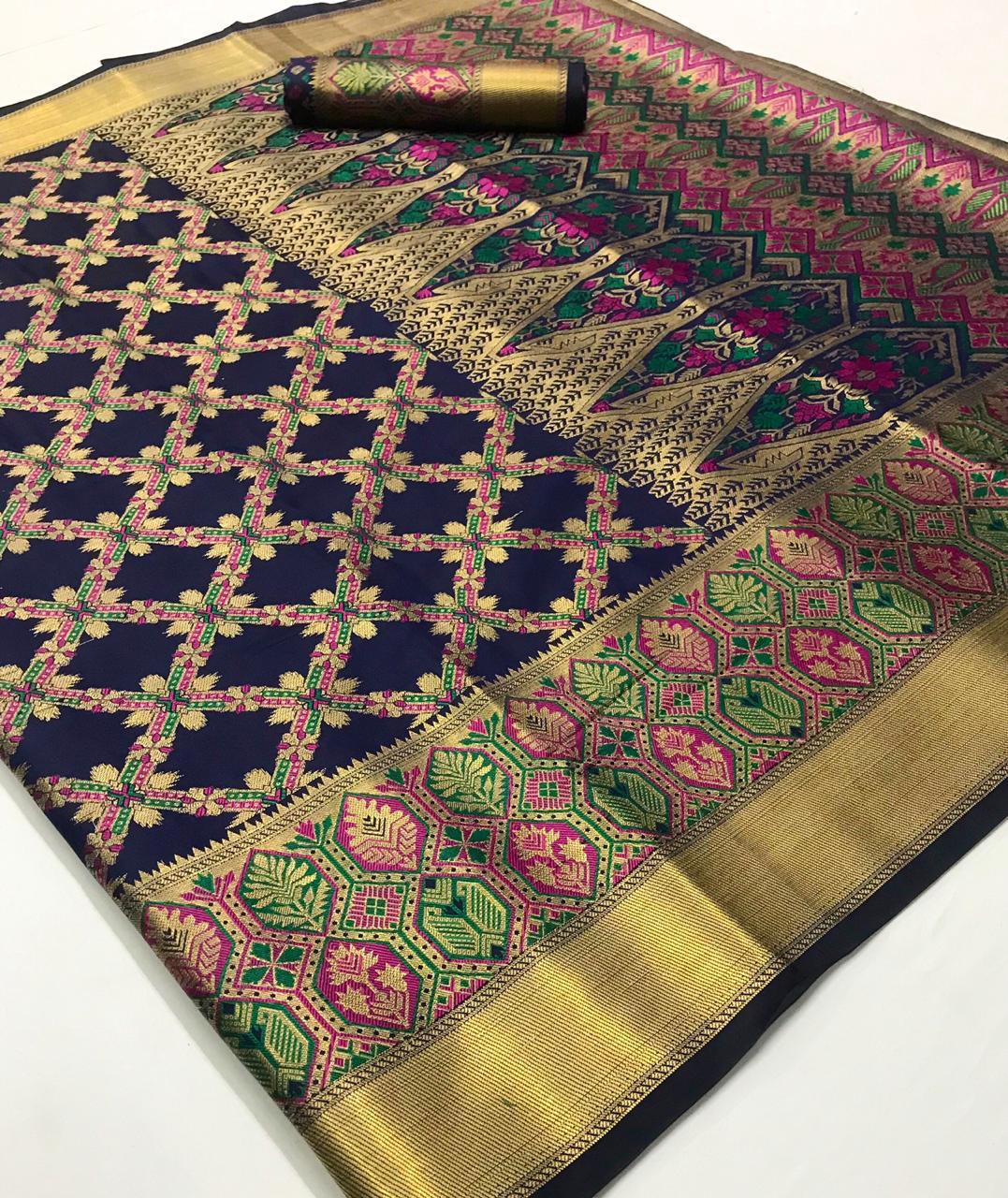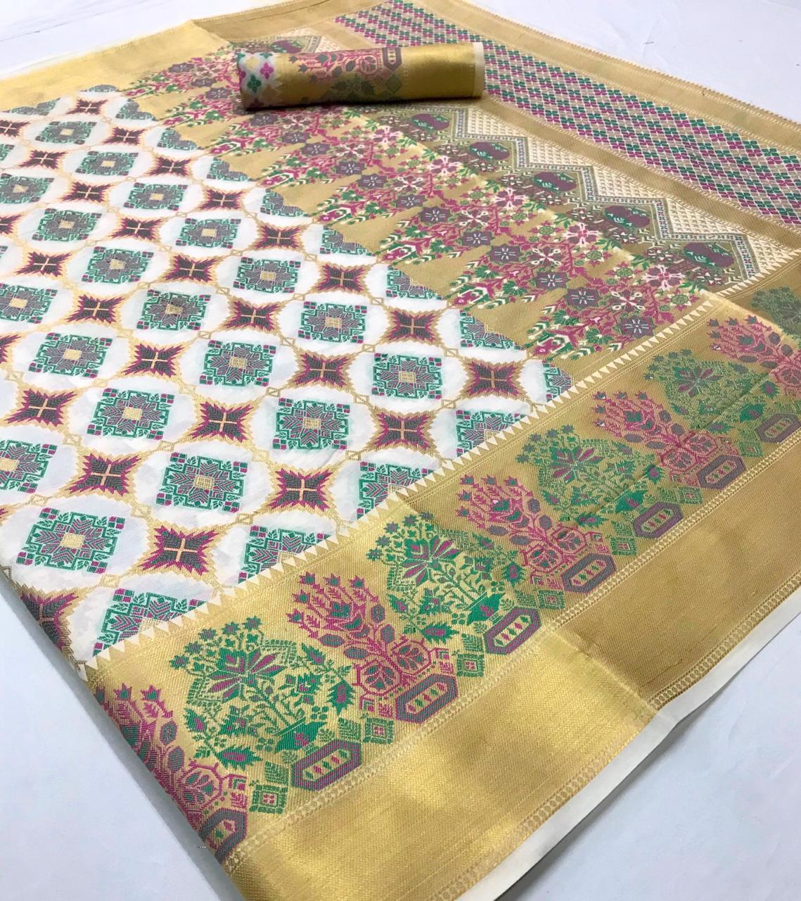 *KADAMPALLI SILK* by Raj Tex _*Heavy Traditonal Patola*_ Rate -1195? per Pcs . Set & Loose. Series -102001 to 102008. GST 5 Percent Extra Delivery from today Single extra ? |